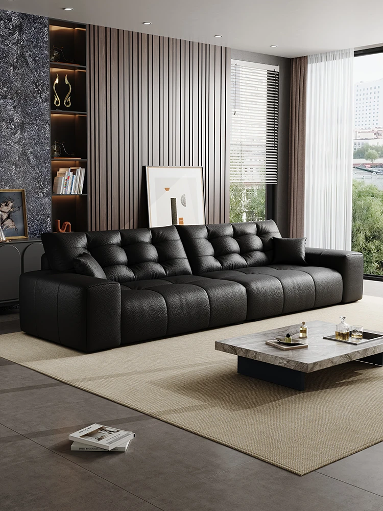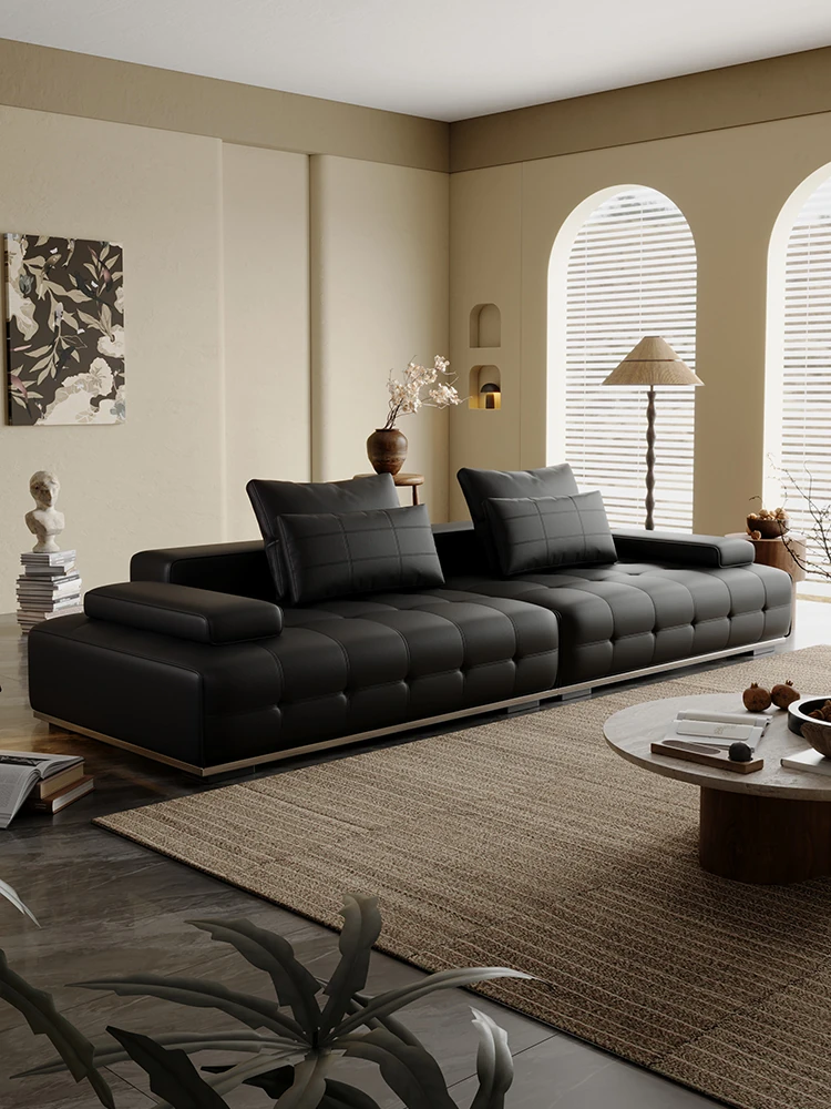 【ラグジュアリー感溢れる】イタリアンミニマルデザイン大型デザイナーズレザーソファ「ローレンス」ストレートタイプ 本革ソファ リビングルーム・ヴィラ向け大空間用