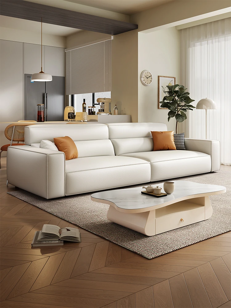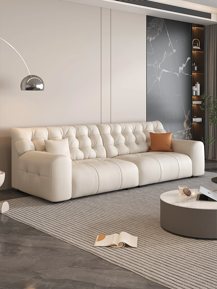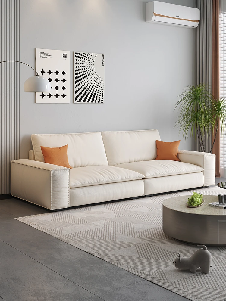 イタリアンミニマルデザイン、エレファントイヤー本革ソファ - モダンでシンプルなリビングルームにぴったり、軽やかなラグジュアリーとレトロな雰囲気を融合。大小さまざまな部屋にフィットする、上質な座り心地を体感してください。