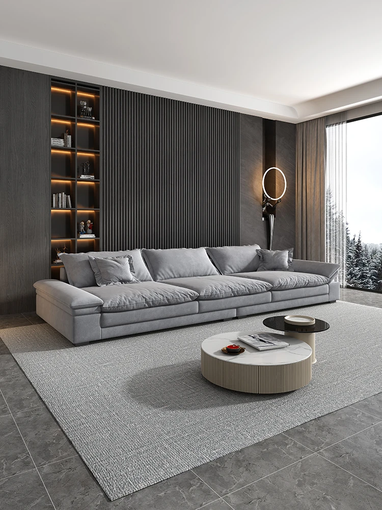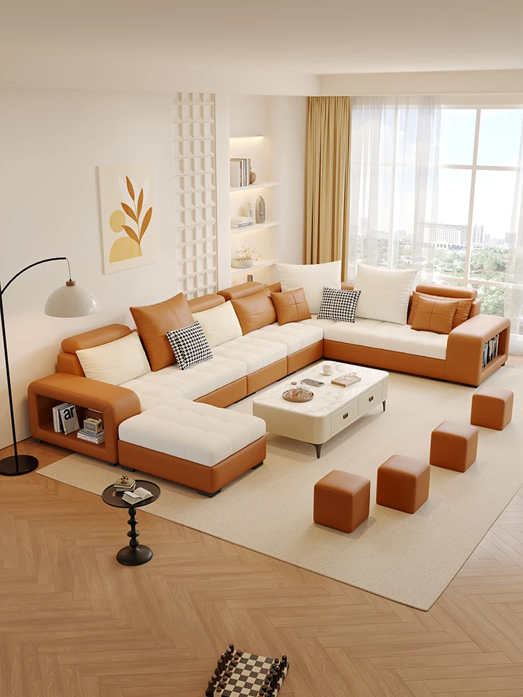 新しいイタリアンミニマリズム猫爪レザーコーナーソファ - 大空間のリビングに最適なシンプルU字型シェーズロングリネン混合ソファセット!モダンでエレガントなデザインが特徴。