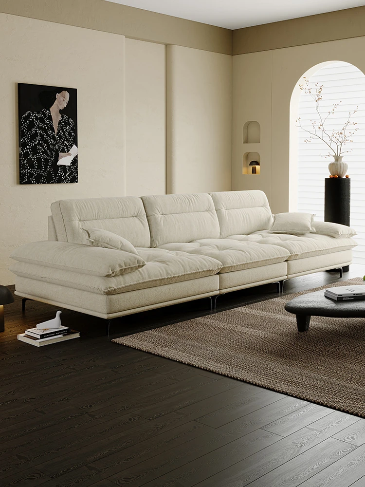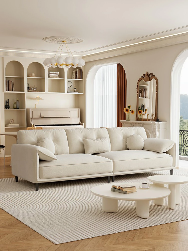 新感覚のふんわり雲のようなフランス風モダンミニマル布張りソファセット 〜 大小リビングにぴったり、コンパクトなスペースでも優雅さを演出します。