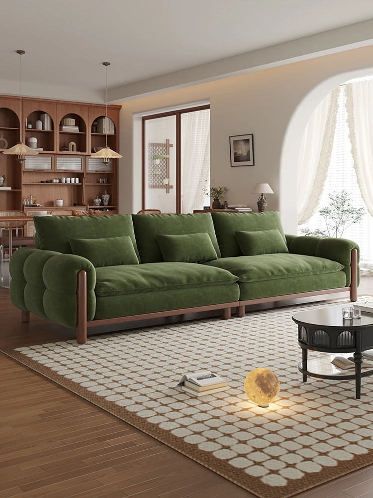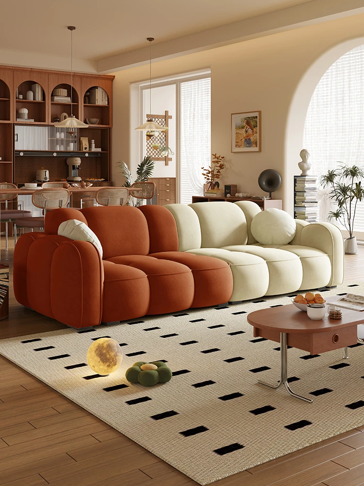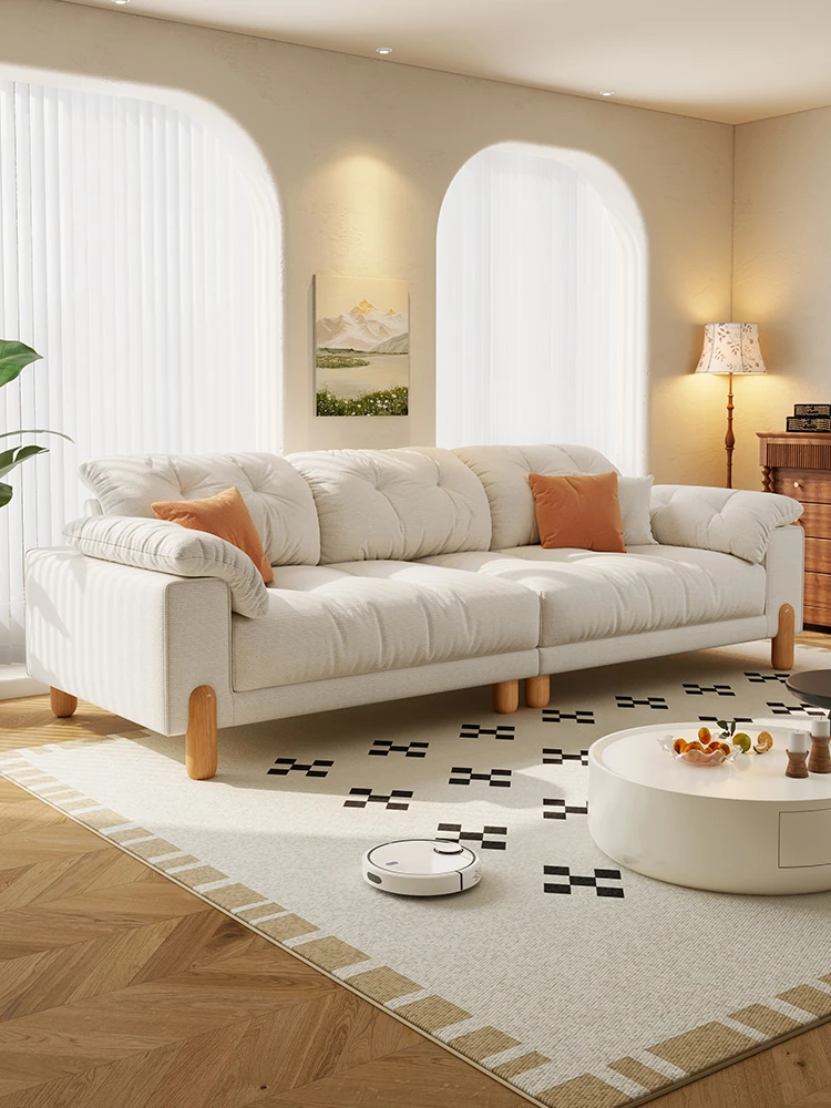 2025年最新!原木クリーム風デザインのキャンディークラウドソファー - 小スペースにぴったりのレトロなストレートシート。