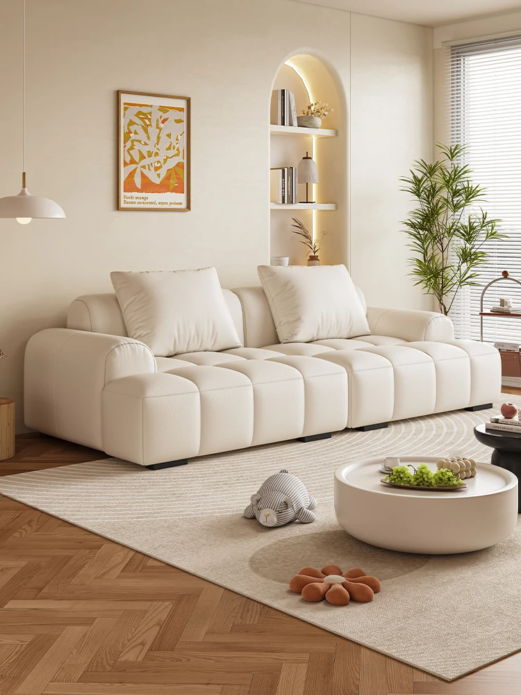 イタリアンライトラグジュアリー技術布の豆腐ブロックソファ - モダンでシンプルなリビングルームにぴったり、高背もたれで快適さをプラス。人気の軽量設計で、スタイリッシュな空間を演出!