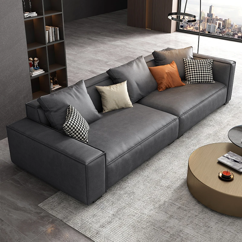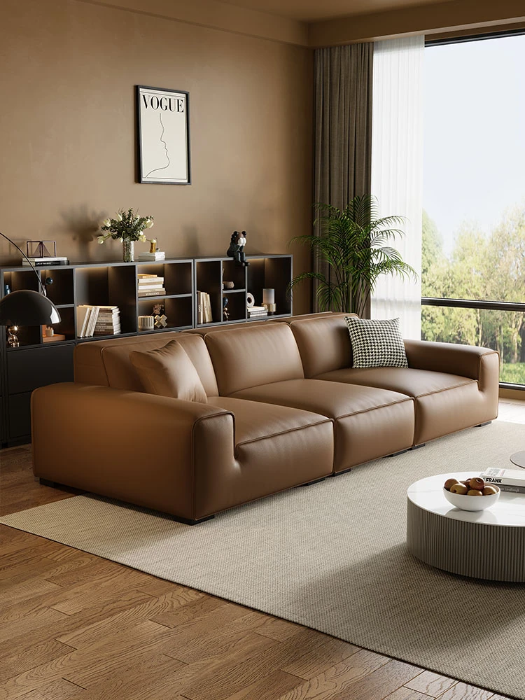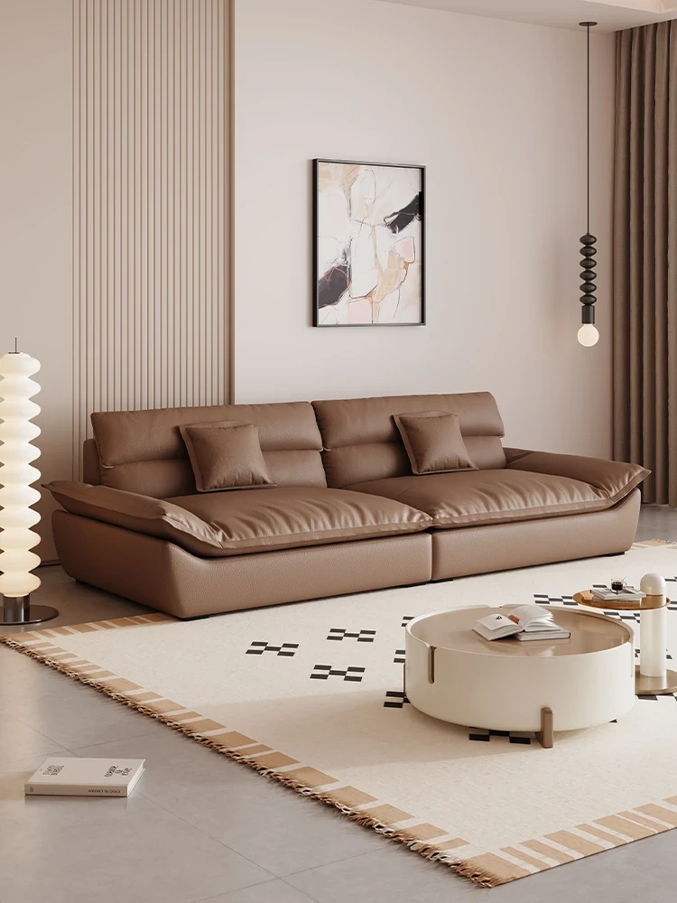 イタリアンミニマリスト本革ダウンソファ-現代の軽ラグジュアリーデザイン、小型から大型リビングルームにぴったりのストレートソファ、快適さとスタイルを兼ね備えた一品!