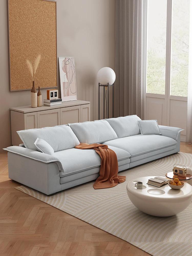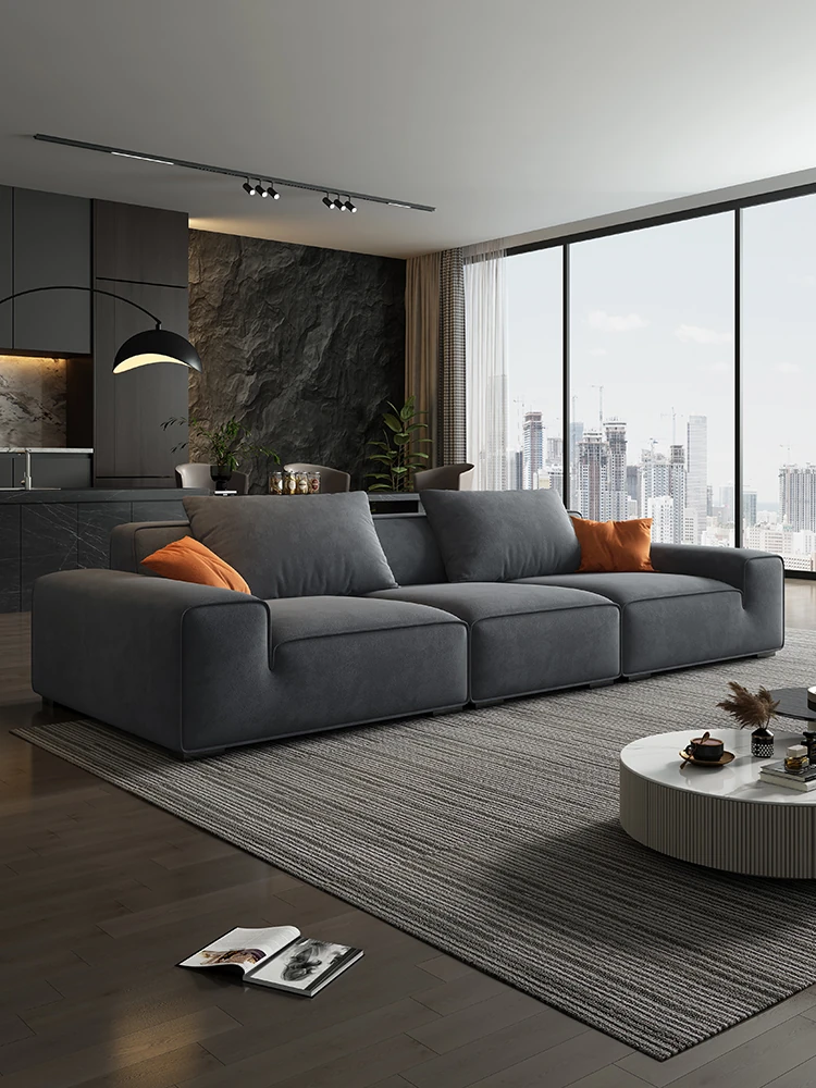 ミニマリズム×軽奢!侘び寂び風デザインのアートなシンプルモダンソファ。3~4人掛けの豆腐型フルカバー布製ソファで、リビングにスタイリッシュな洗練を。