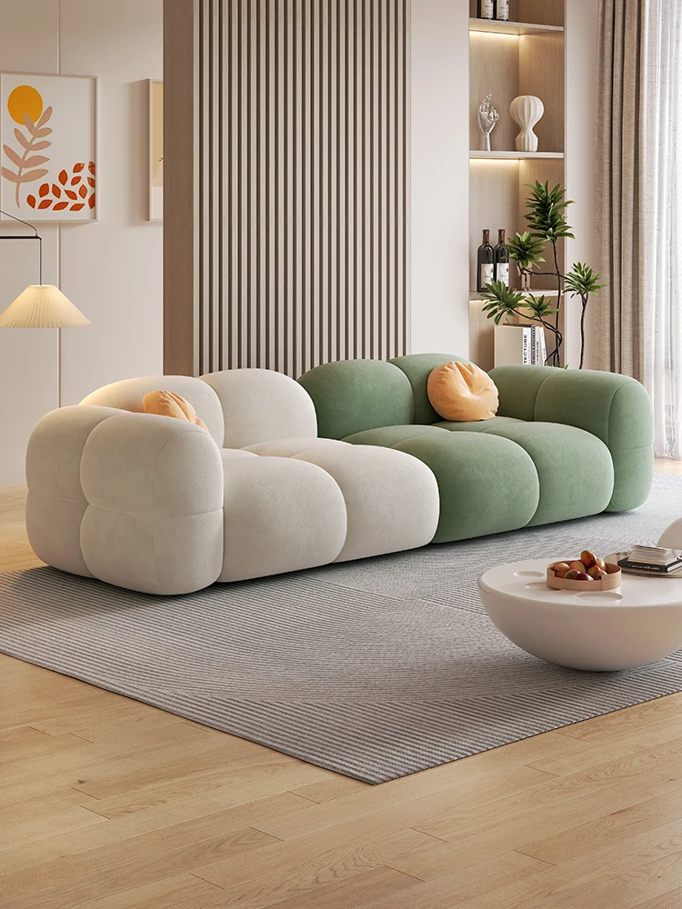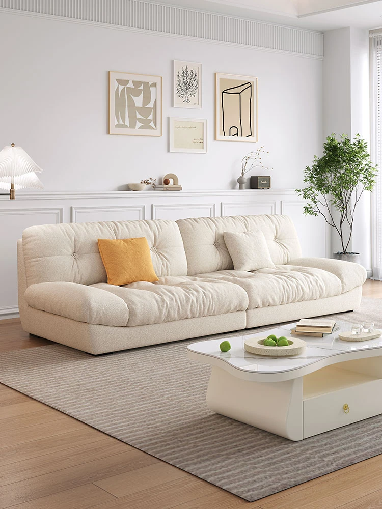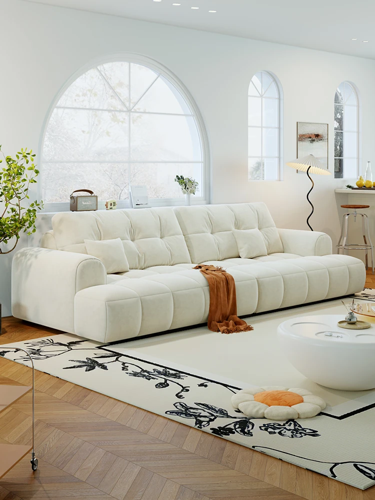 クリーミーな風合い!モダンなクラウドソファ - 小型リビングにもぴったりな直線型キューブソファ。SNSで話題のアパートにも最適な綿菓子のような座り心地!