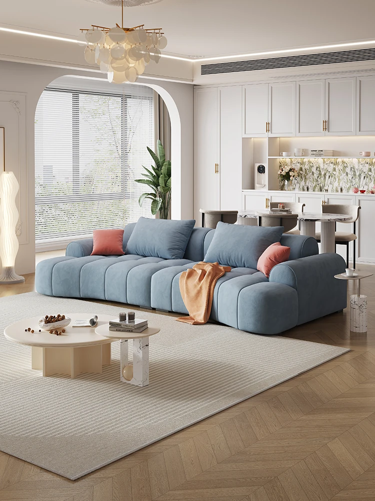 極簡×軽奢!イタリアンスタイル民宿に最適 コンパクト モダンデザイン 3〜4人掛け マット生地 布製ソファ 大人のためのエコノミータイプ
