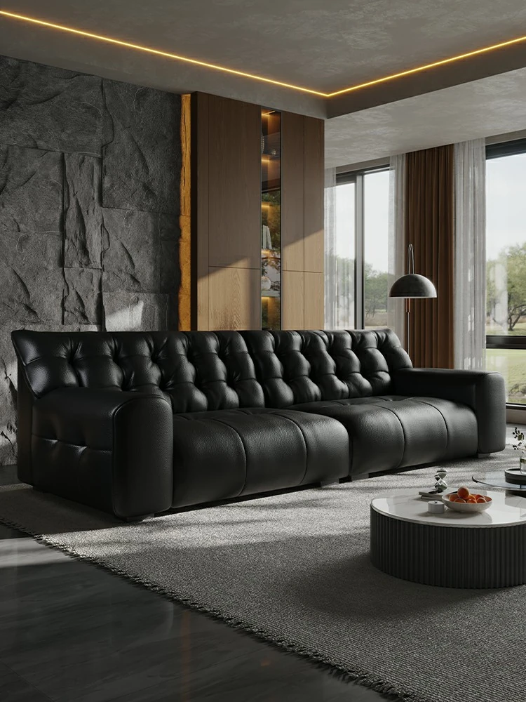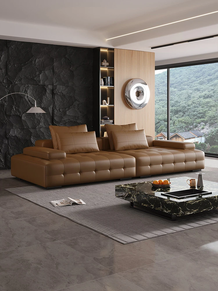 イタリアンヴィンテージ風オイルワックスレザーソファ - モダンラグジュアリーなリビングにぴったり!あらゆるスペースに対応するピアノキーライン本革ソファ。