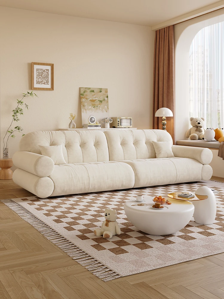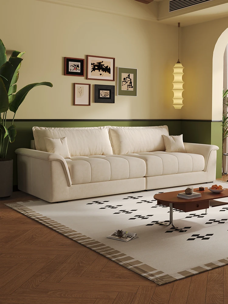 フランス風ヴィンテージクリームパフソファ―リビングルーム向け、シンプルモダンなアパートに最適!雲のような包み込み感触と猫爪対応生地で快適さを実現。