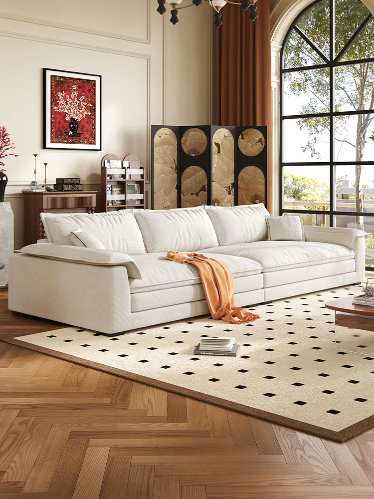 2025年新作:ヴィンテージフレンチスタイルのコーデュロイソファ - 極上のクリームシルクタッチ!広々としたリビングにぴったりの超ワイドシート。