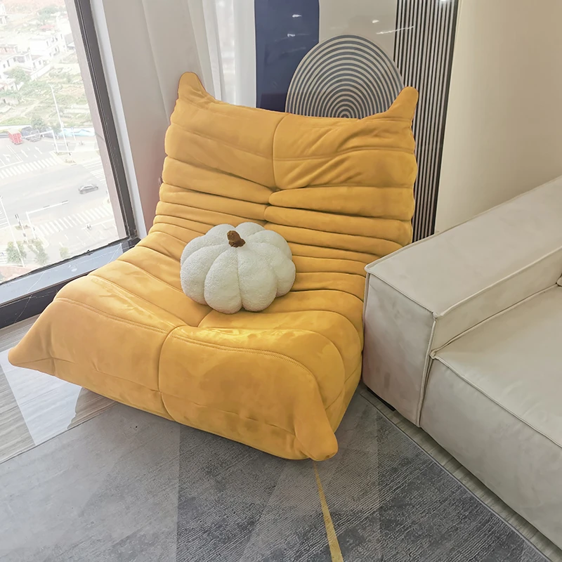 【話題沸騰】ミニマルラグジュアリー!ふわふわ触感のフェザーチェア - リビング&バルコニーに最適なシンプルフロアチェア柔らか快適、リラックスできるスパイラルクッションソファ