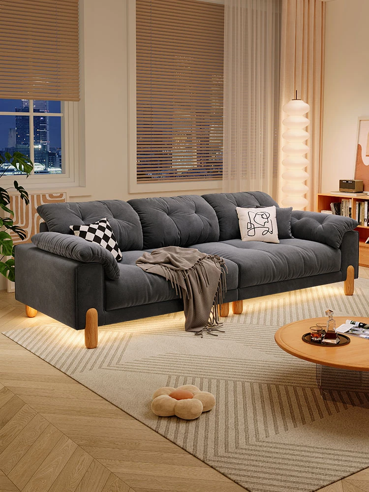 高級感あふれるふわふわ猫爪生地使用!ベビー肌触りのイタリア風テクノロジーソファ、3-4人掛けリビング用クッション付き