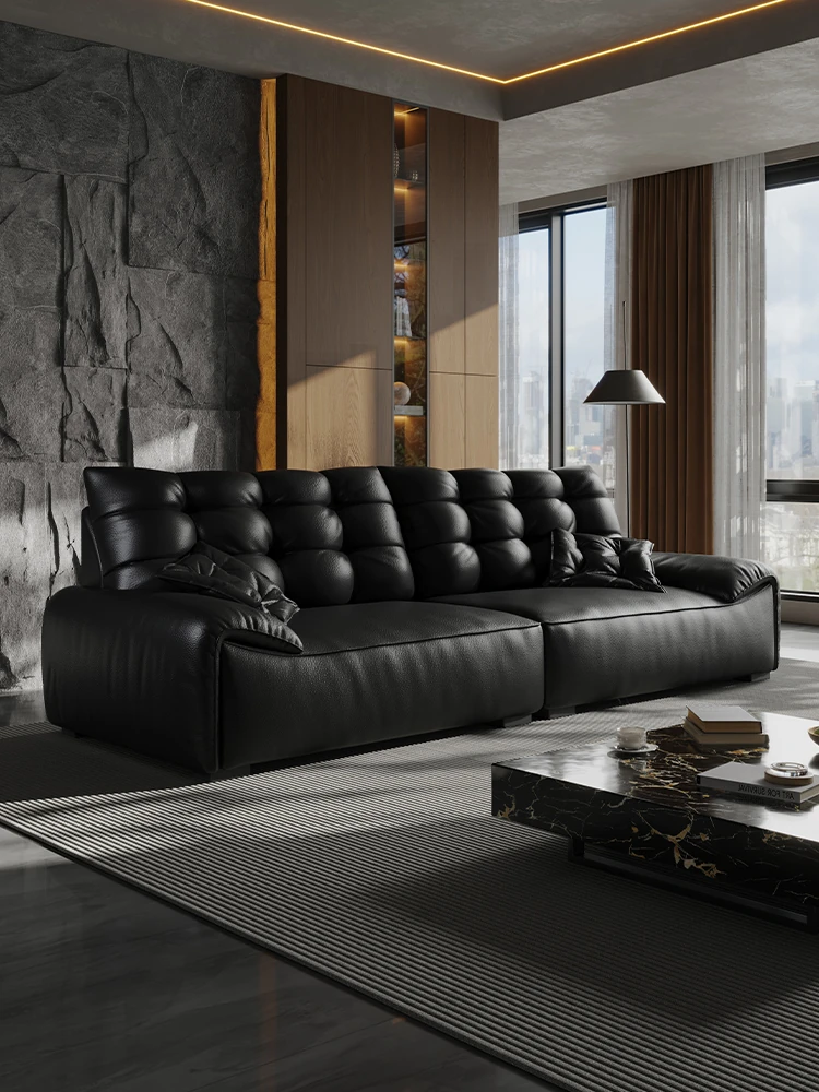 【高档魅力】イタリア製本革の特大ブラックベアソファ - シンプルモダンなリビングにぴったりの高背ヨットデザインソファ、様々なスペースにフィット