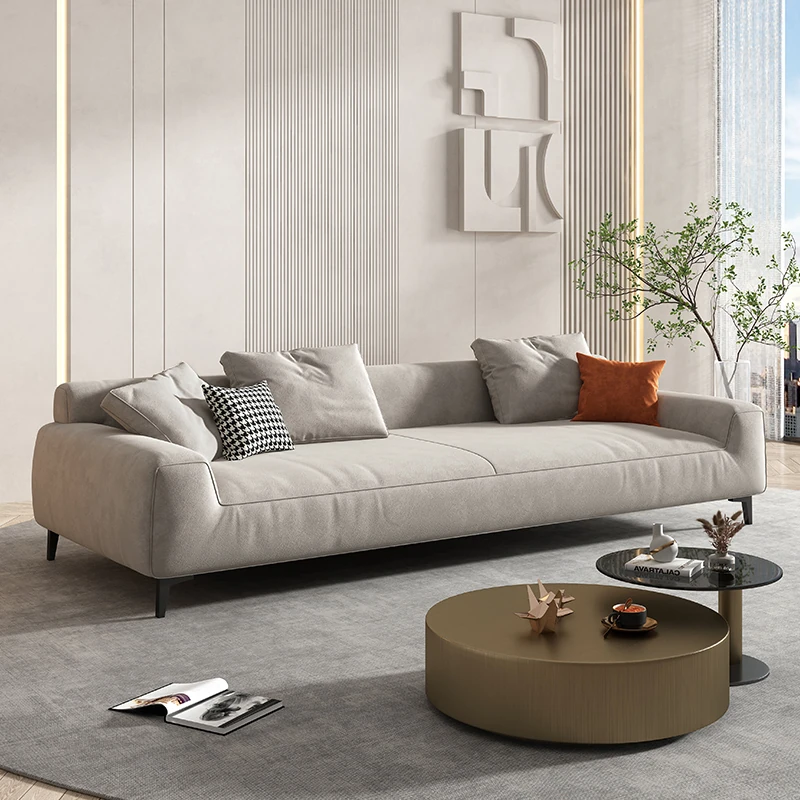 2025年新作!意大利風ミニマリストスタイルコンパクト民宿用リビングソファ - 北欧デザインで3〜4人掛けにピッタリの直線的レイアウト。