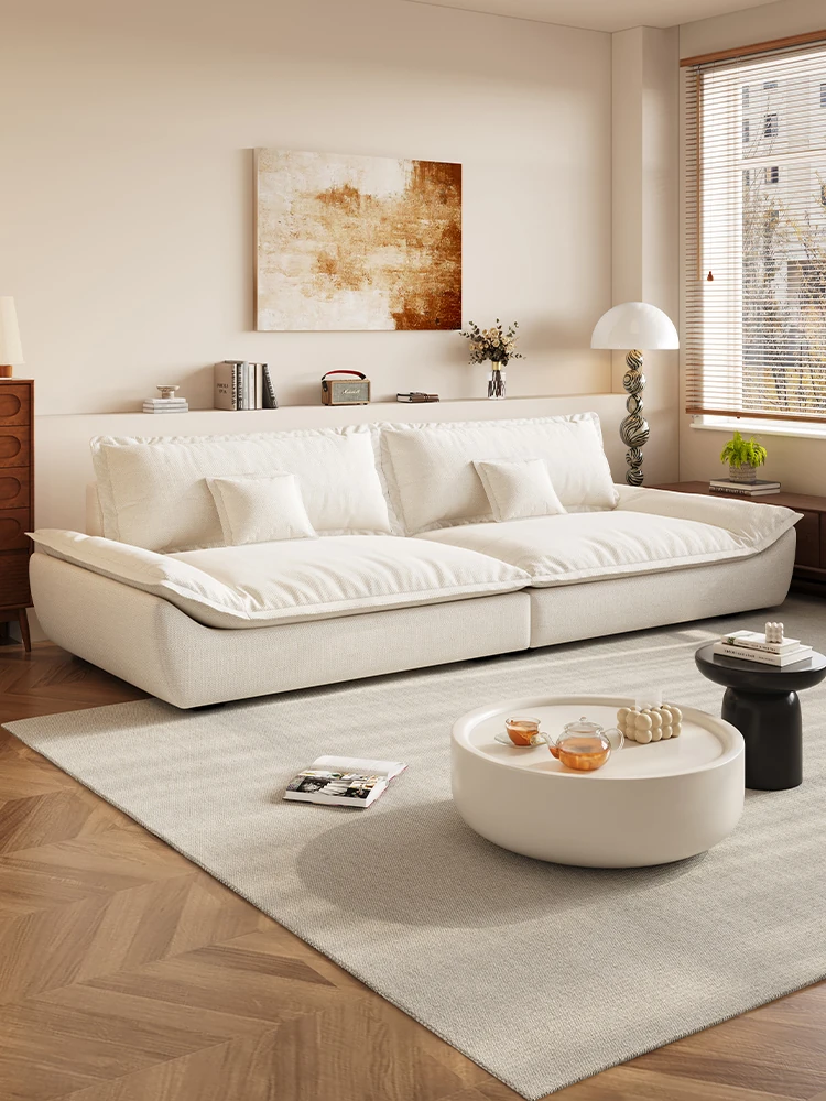 2025年新作!现代シンプルなデザインで、小型アパートにもぴったりのコンパクトなコットンリネン製クルーザーソファ。リビングをクリーミーでおしゃれに演出するストレートタイプのファブリックソファ!
