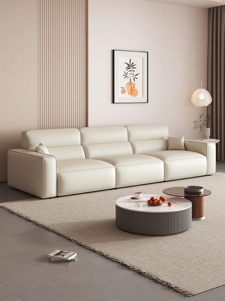 イタリアンミニマルデザイン本革ソファ—高級感漂うリビングルームに最適!機能性抜群、直線スタイルのヴィンテージ調リクライニングバック搭載で快適な寛ぎをお約束。