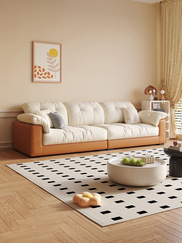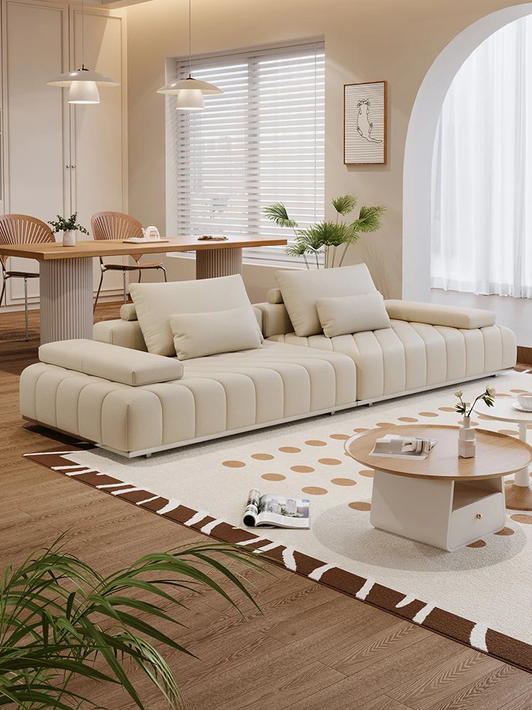 モダンでミニマルなテクノロジーファブリック採用、洗濯不要の贅沢カウチソファセット-イタリアンエレガンスが際立つ家庭用ソファ、大小スペースに最適!