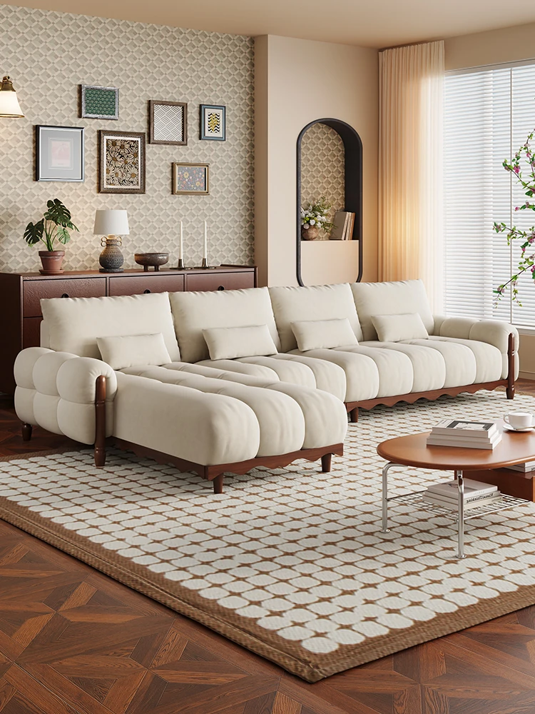 【2025年新作】フレンチビンテージ風雲感ベルベット貴妃ソファー - 天然木と布の絶妙な組み合わせ、雲のような柔らかさが魅力!おしゃれなアパートやリビングにぴったりの雲朵パフソファ