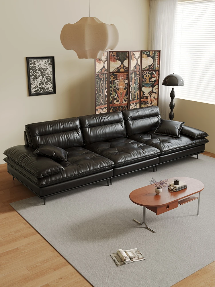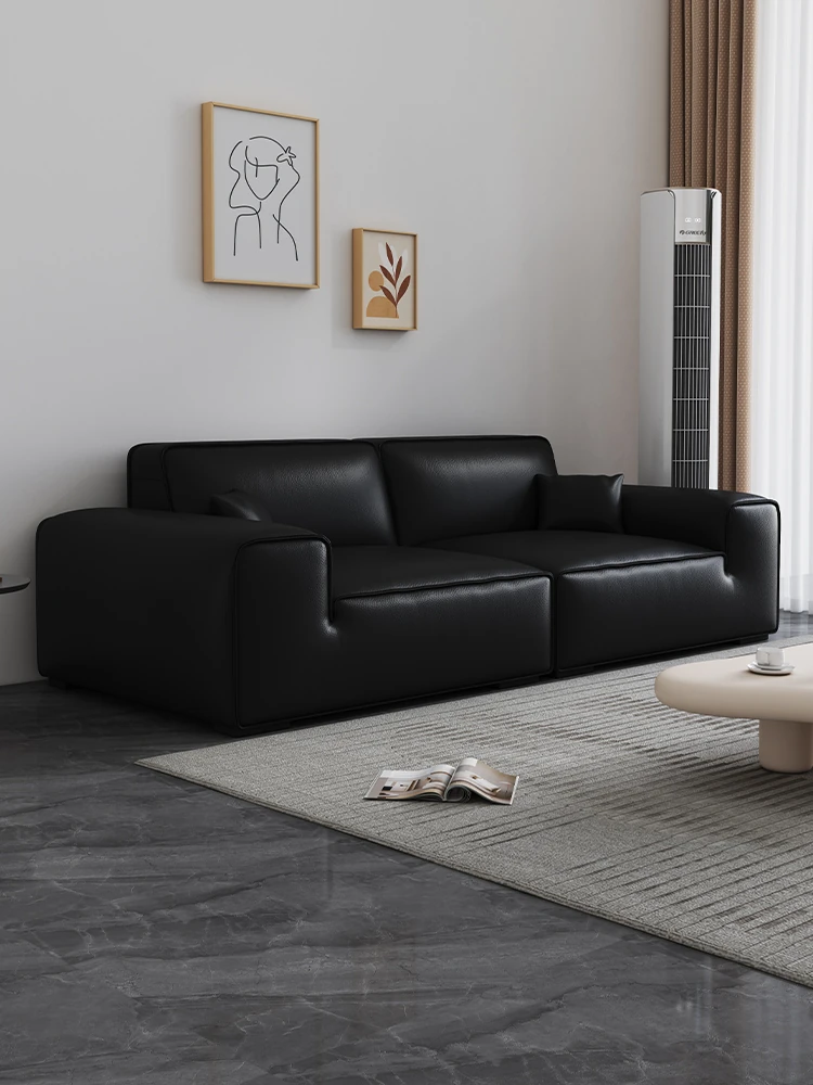 2025年新作イタリアンミニマルデザイン エレファントイヤー ソファ リビング用 ゆったり大サイズ ブラックレザーシンプルソファ