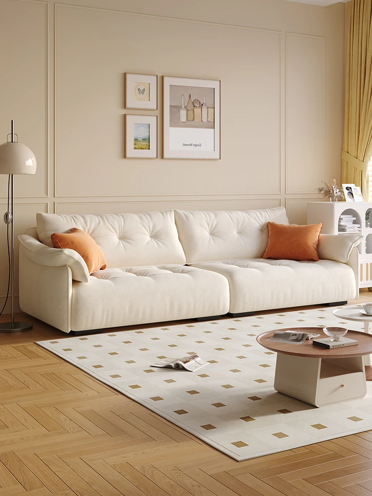 夢のような心地よさ!フランス風クリーム雲シングルコットンキャンディーソファ - コンパクトなリビングにぴったりのシンプルデザイン