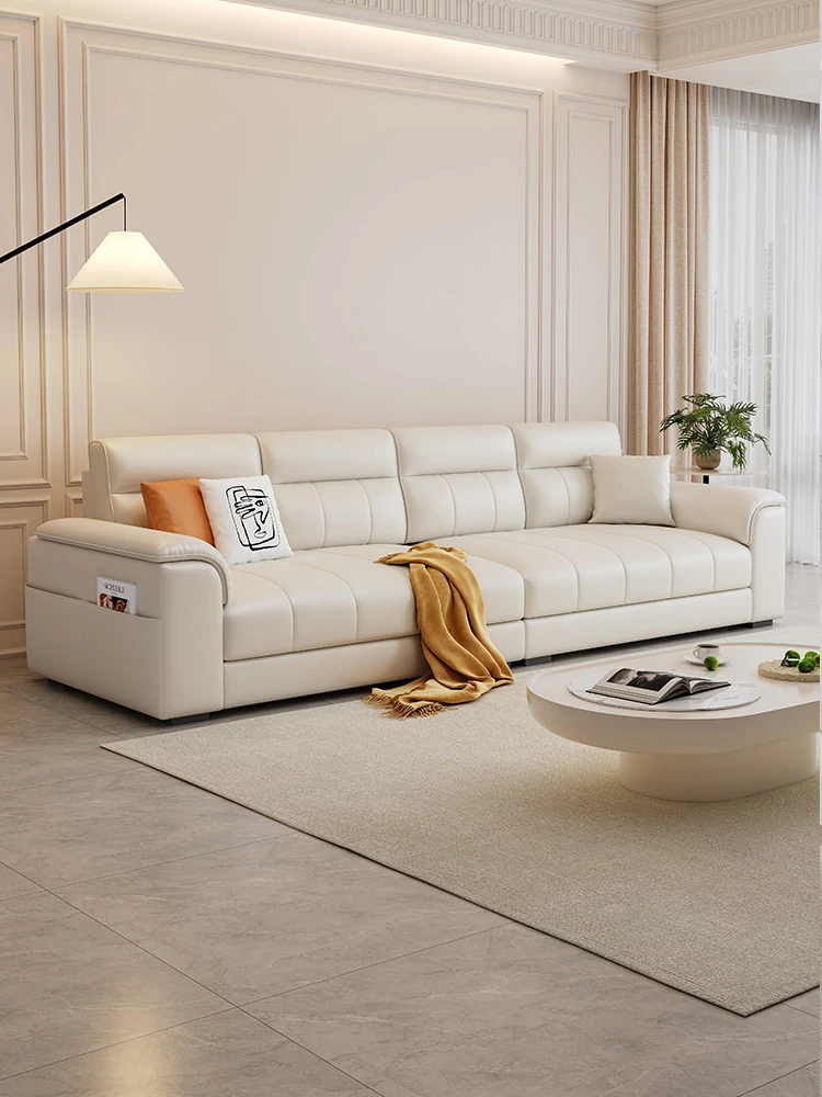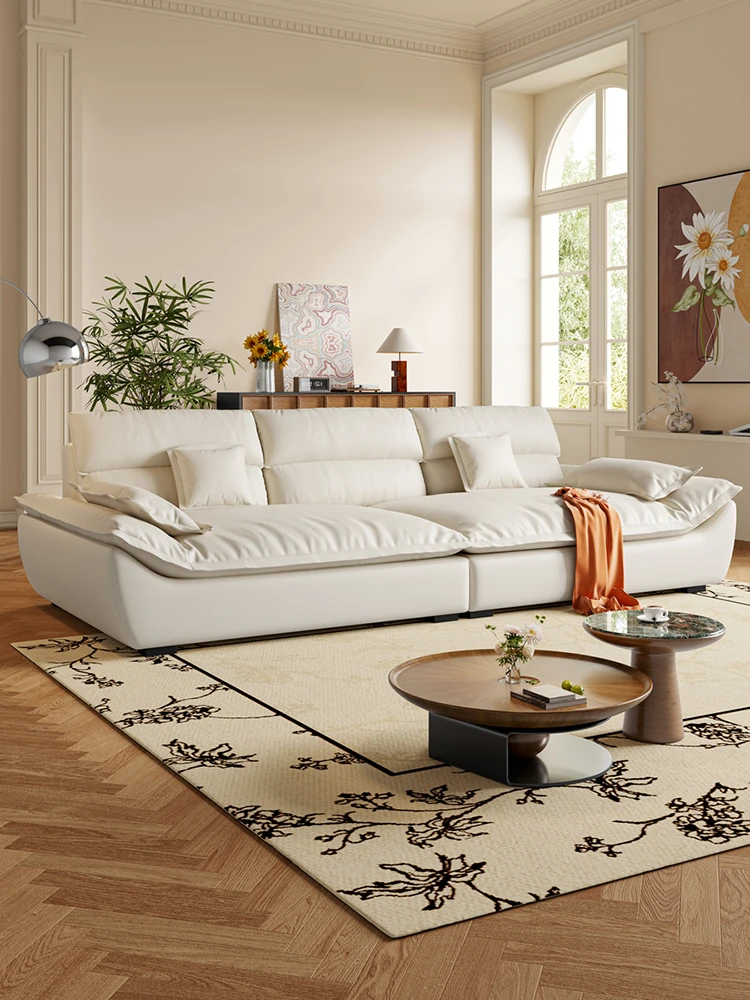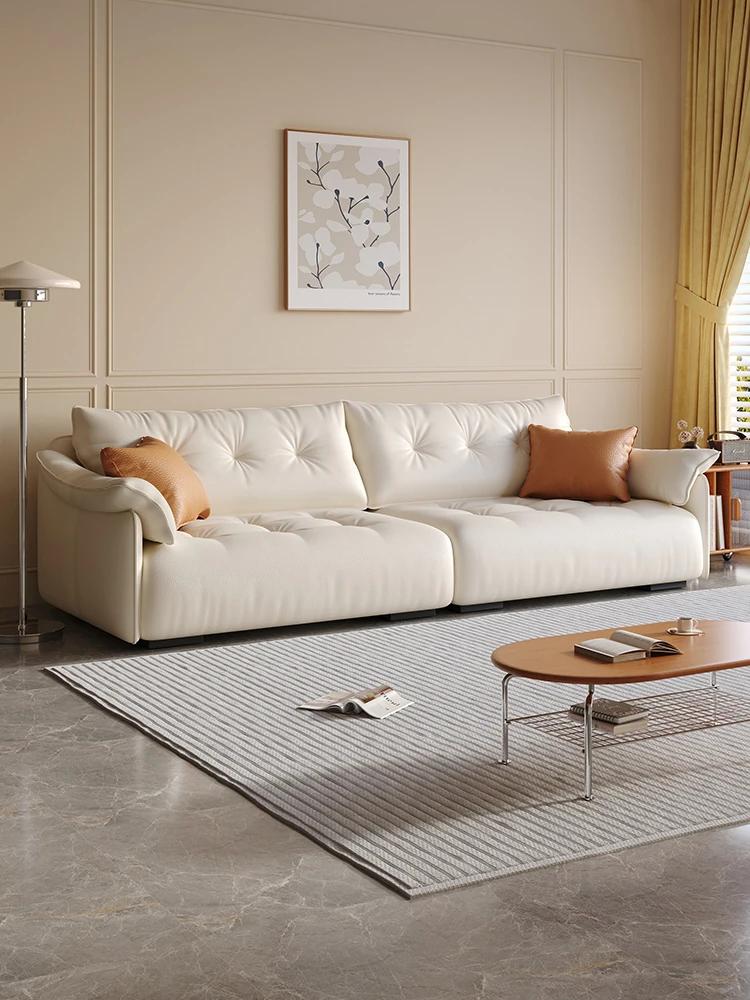 French Cream Cloud Puff Sofa – Modern Minimalist Leather Sofa for Living Room, Ideal for Small Apartments and Cozy Spaces.