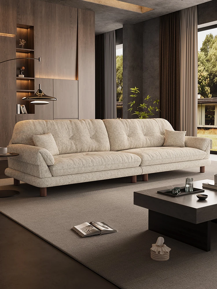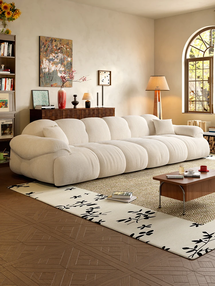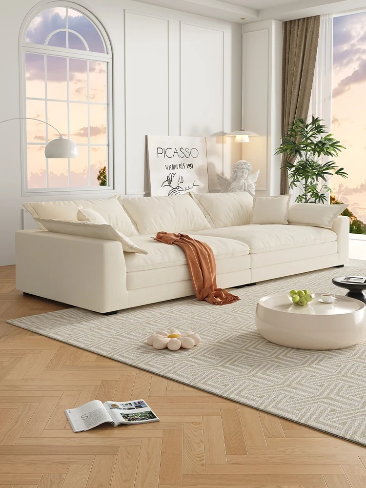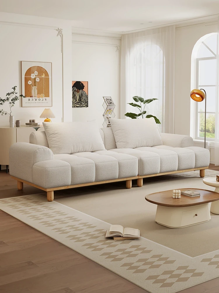 French Creamy Cotton-Linen Puff Jelly Sofa - Perfect for Small Apartments, Cozy Living Rooms, and Trendy Airbnbs. Stylish Cloud Sofa for a Chic, Modern Touch!