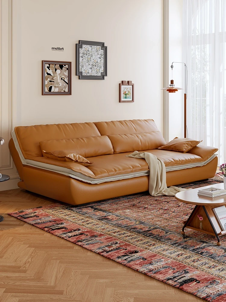 Italian Luxe Earl Genuine Leather Cloud Sofa - 2025 New Retro Minimalist Design for Living Room & Apartment, Perfect for Stylish Comfort