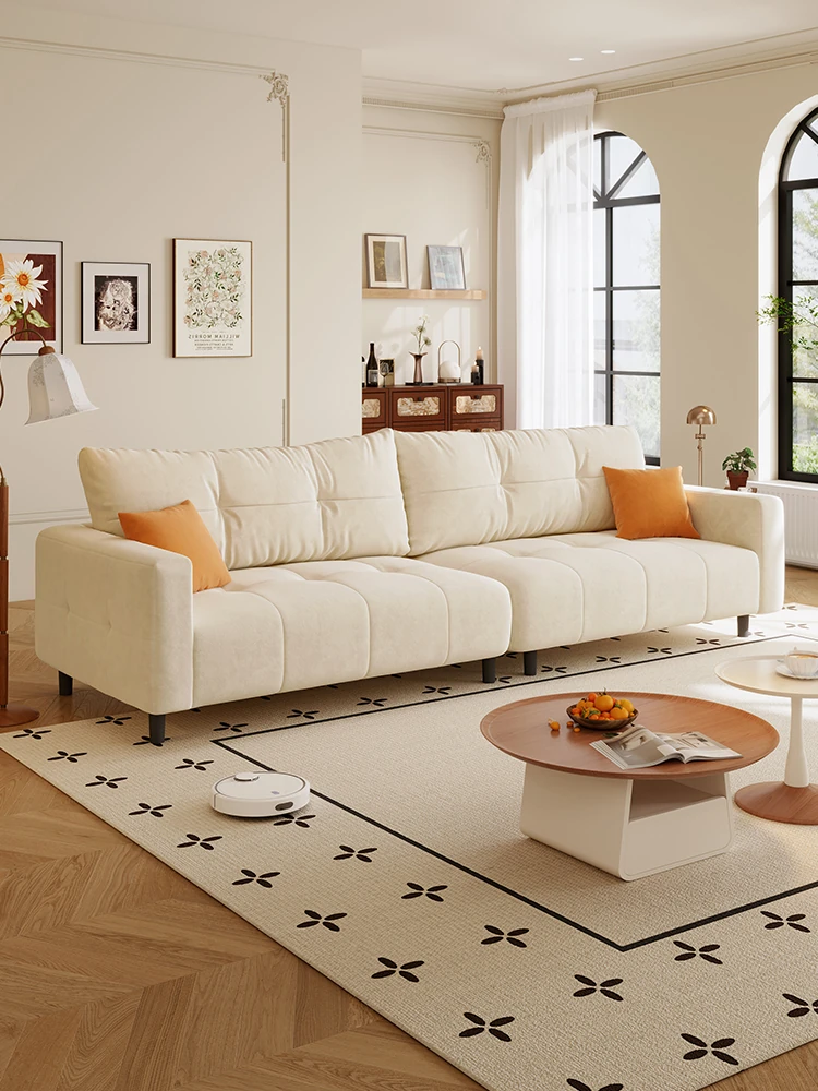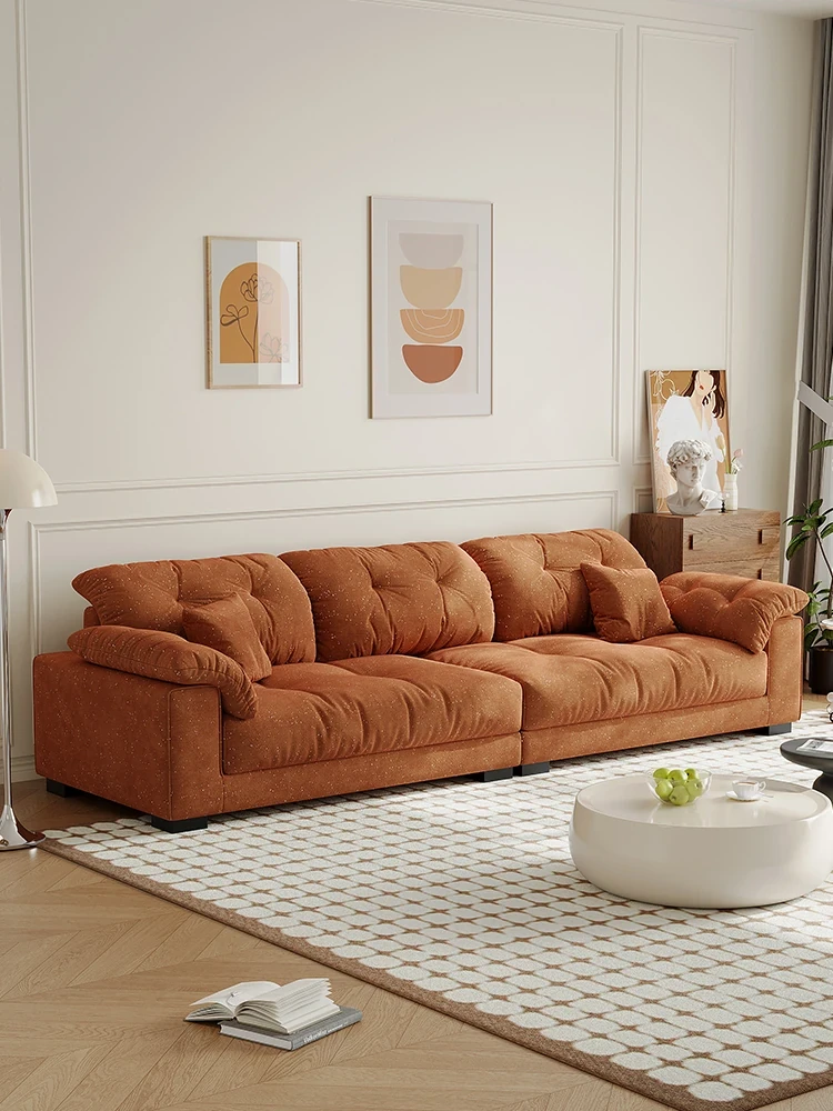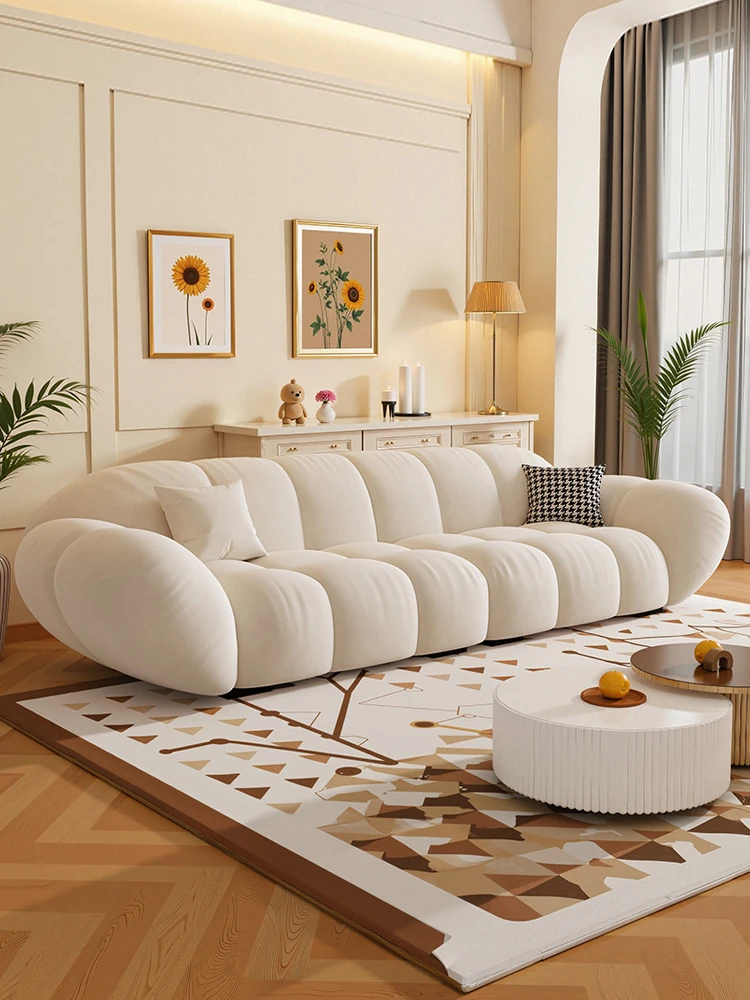 2025 New French Cream Puff Cloud Velvet Sofa for Small Apartments - Stylish and Cozy Fabric Couch for Your Living Room