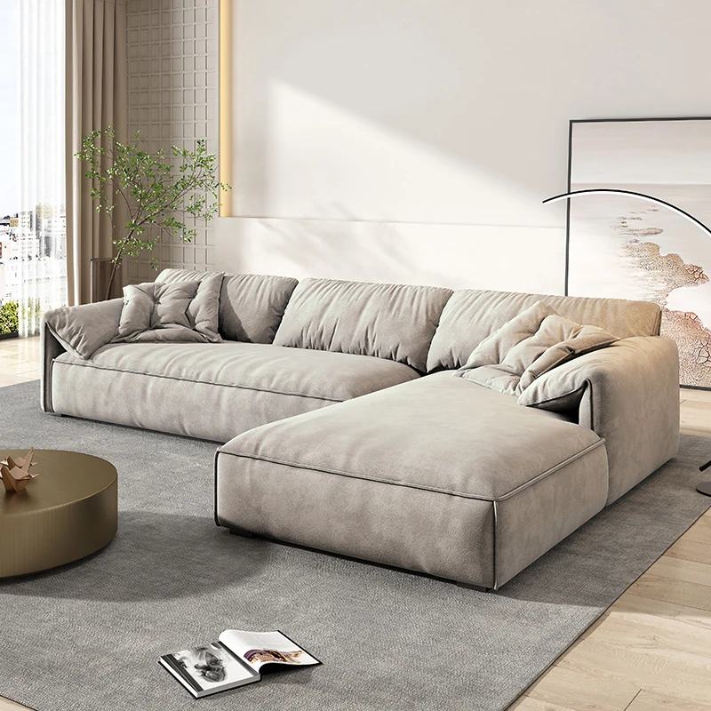 Italian Minimalist Modern Wash-Free Microfiber Sofa with Sponge Latex Elephant Ear Design for Small Spaces – Perfect for Your Living Room!