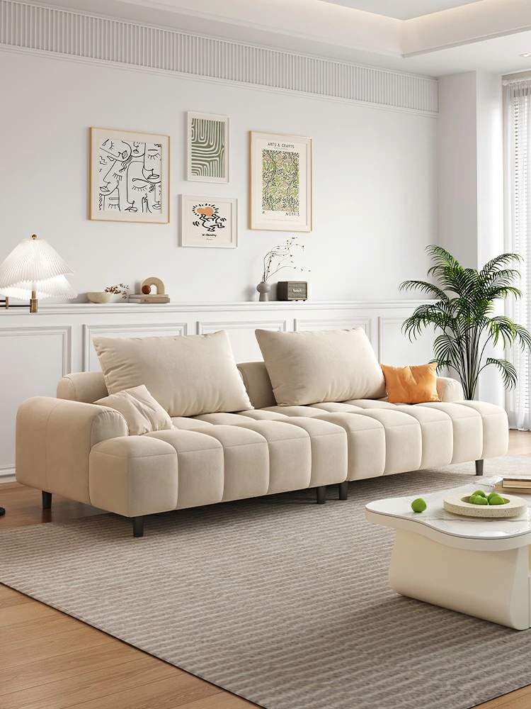 Creamy Jelly Wood-Style Sofa - French Chic Minimalist Design for Cozy Apartments, High-Leg Upholstered Sofa, Perfect for Modern Living Rooms