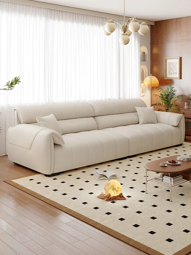 2025 New Retro Cream Corduroy Elephant Ear Sofa - Stylish High-Back Piano Key Design Perfect for a Modern Living Room