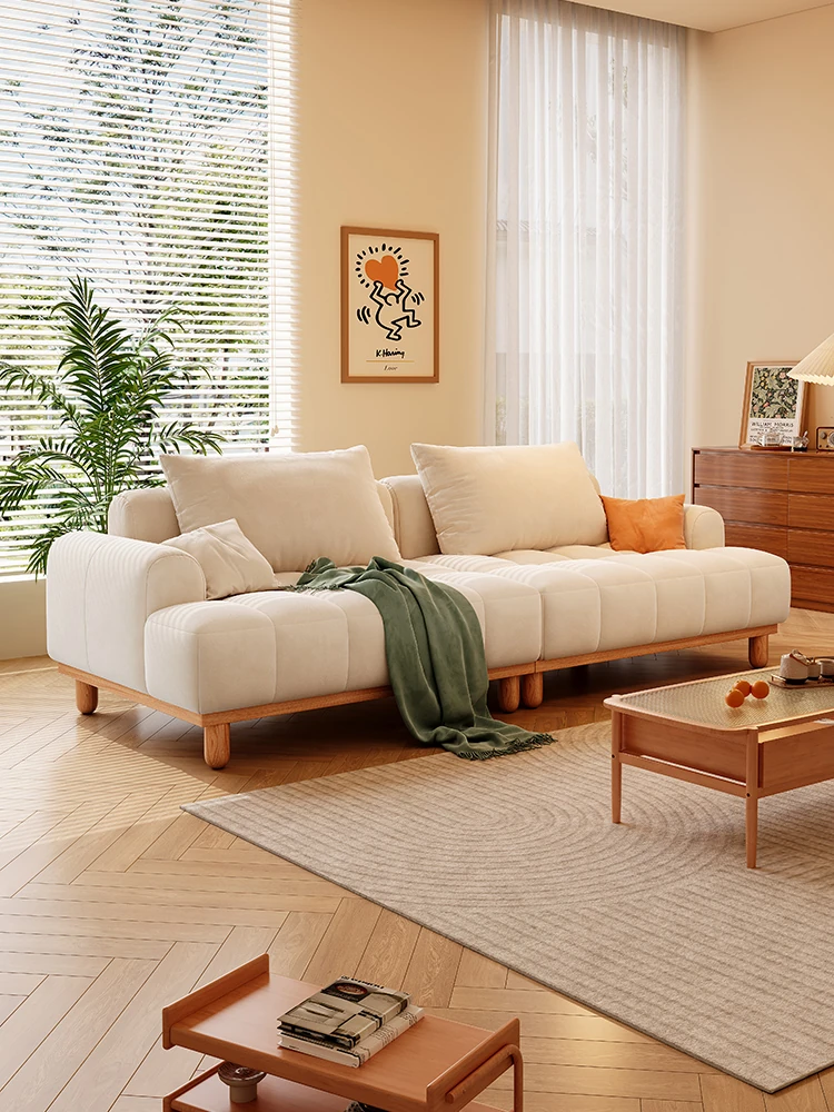 Modern Nordic Minimalist Cream Log Cloud Puffer Sofa Set – Soft Plush Fabric, Cat-Scratch Resistant, Perfect for Cozy Living Rooms