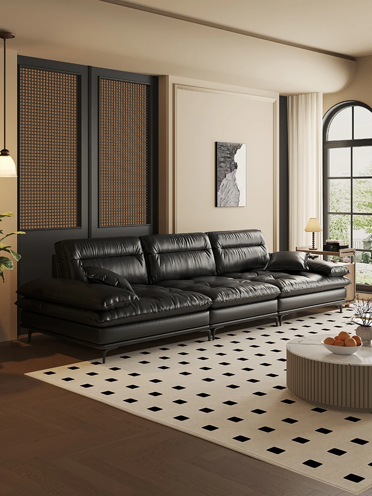 Italian Luxury Black Bear Genuine Leather Sofa - Modern Feather-Filled High Back Design for Cozy Living Rooms of All Sizes