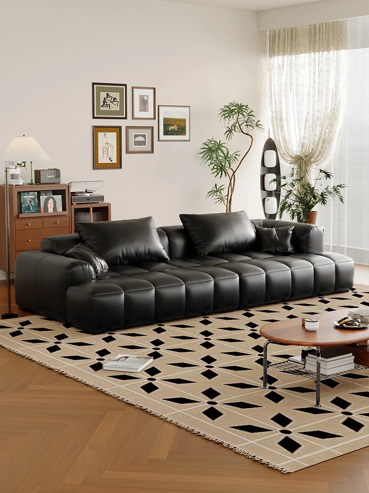 Contemporary Italian Modern Napa Leather Sofa Set - Spacious Black Couch for Living Room, Perfect for 3-4 People with Sleek Design