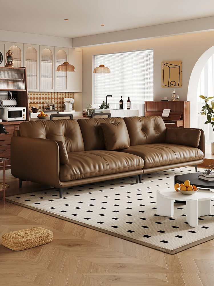 Italian Retro Style Oil-Wax Leather Sofa - Modern Luxury for Any Living Room Size, Featuring Piano Key Design and Genuine Leather Upholstery