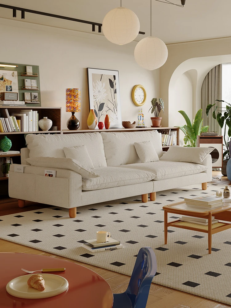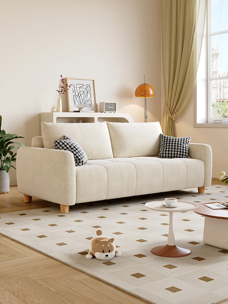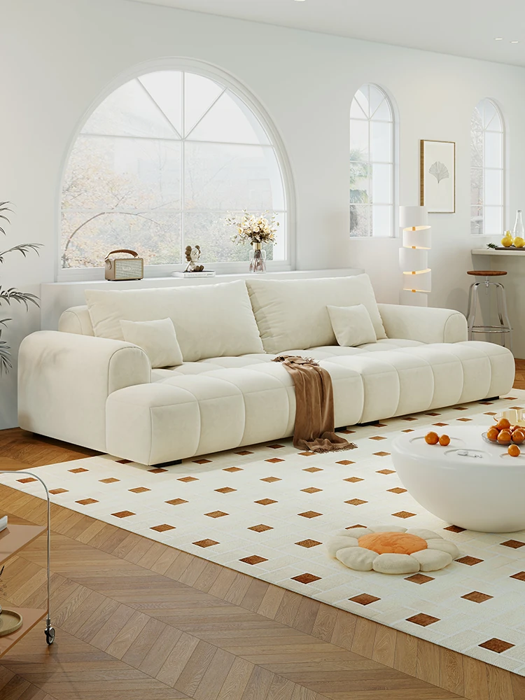 Trendy Chic French Cream Style Sofa - Cat-Friendly Plush Fabric, Modern Minimalist Design for Couples and Various Living Room Sizes