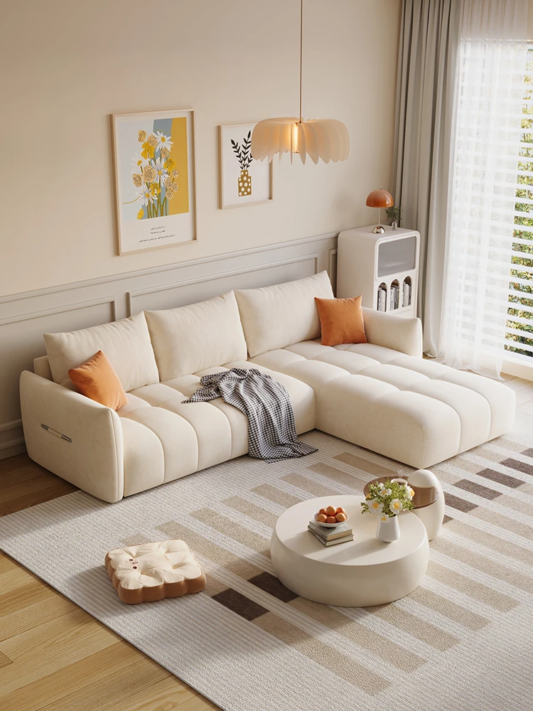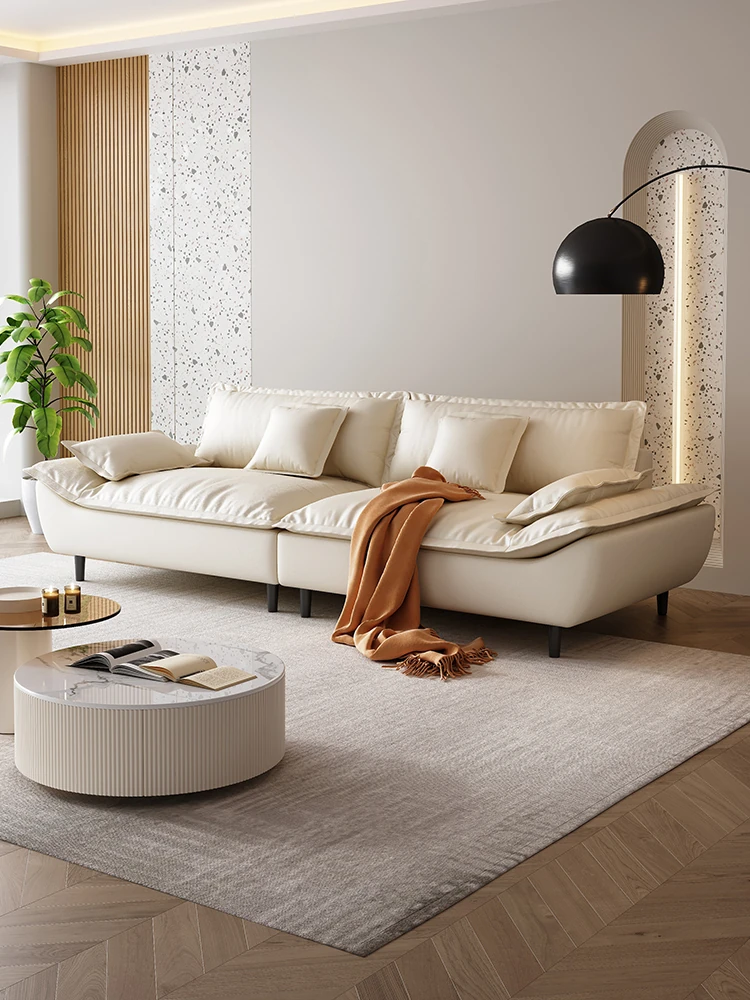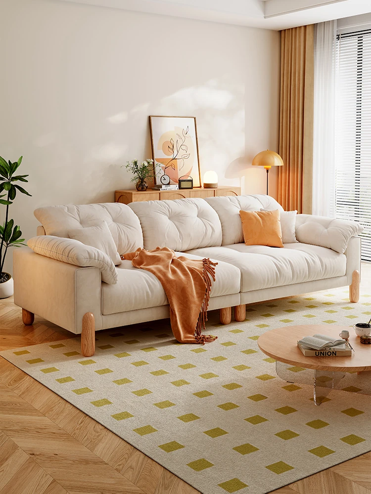 2025 New French Creamy Style Upholstered Sofa - Nordic and Italian Chic Small Living Room Chaise Lounge Set: Ultimate Comfort for Modern Homes