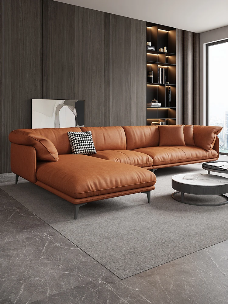 Italian Minimalist Genuine Leather Sofa - Luxury Adjustable Vintage Sailboat Design for Living Room