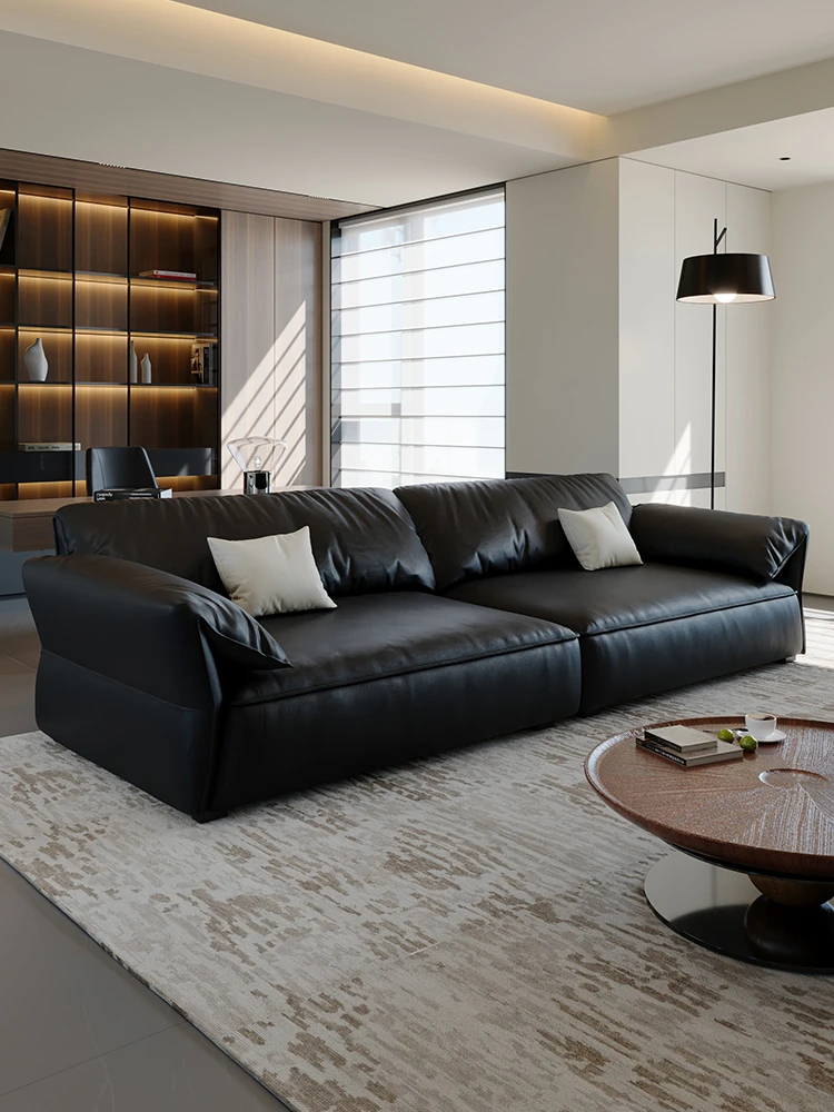 2025 New Italian Minimalist Elephant Ear Sofa - Sleek Black Leather Couch for Modern Living Rooms in Large Homes