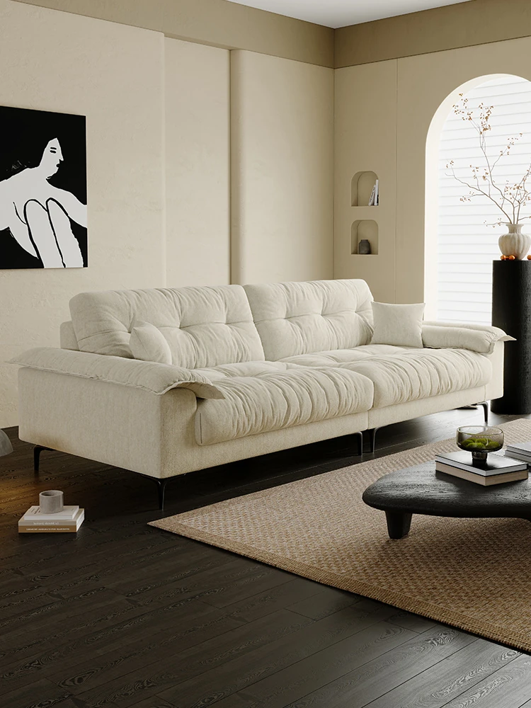 Elegant French Cream Linen-Cotton Sofa - Modern Vintage High-Leg Cloud Comfort for Stylish Living Rooms and Apartments