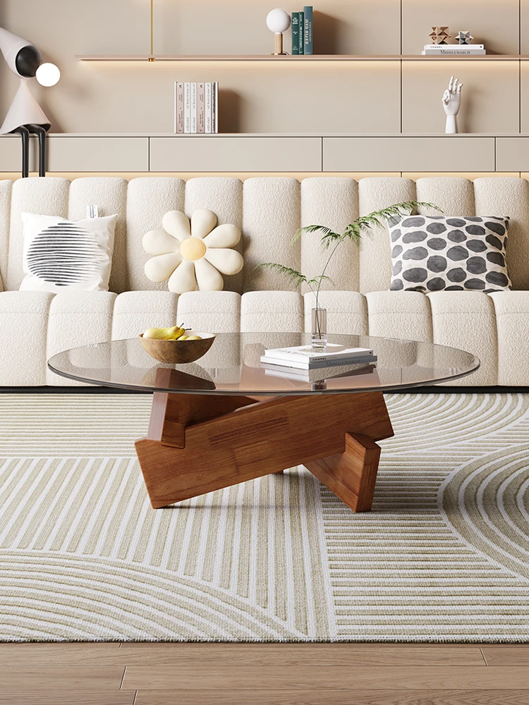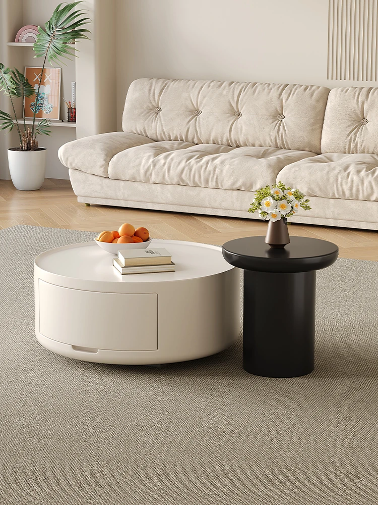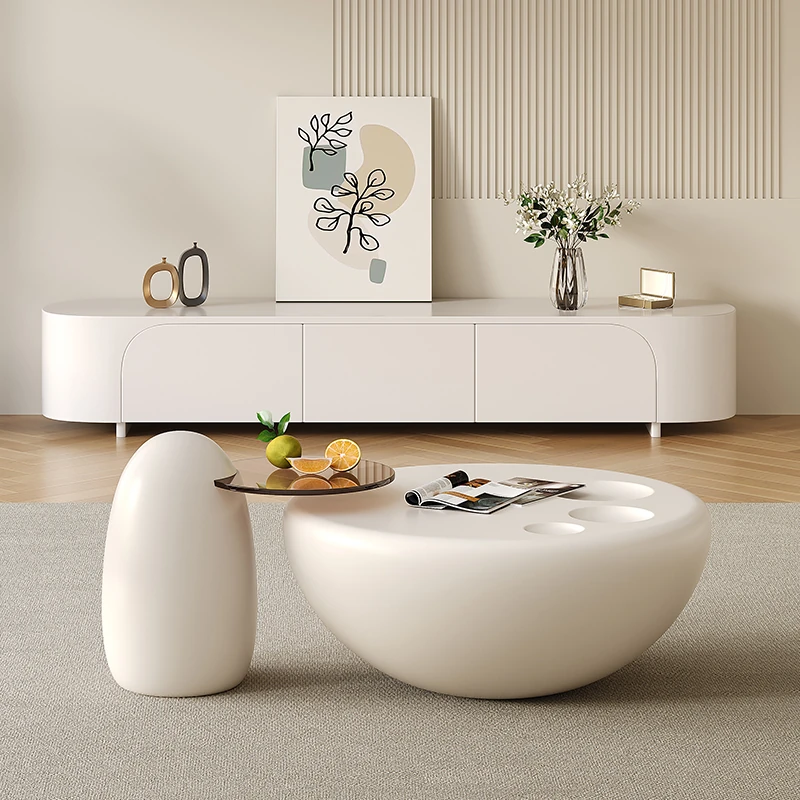 French-Style Cream Coffee Table: Modern Round Design for Small Living Rooms - Trendy Statement Piece with TV Stand Combo