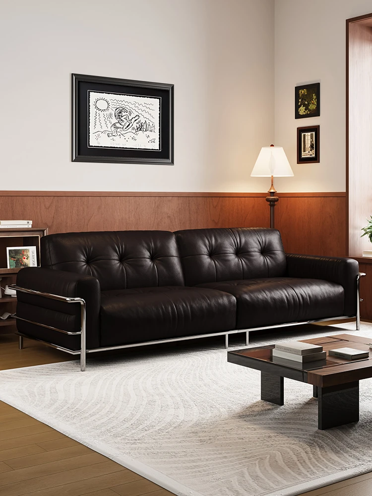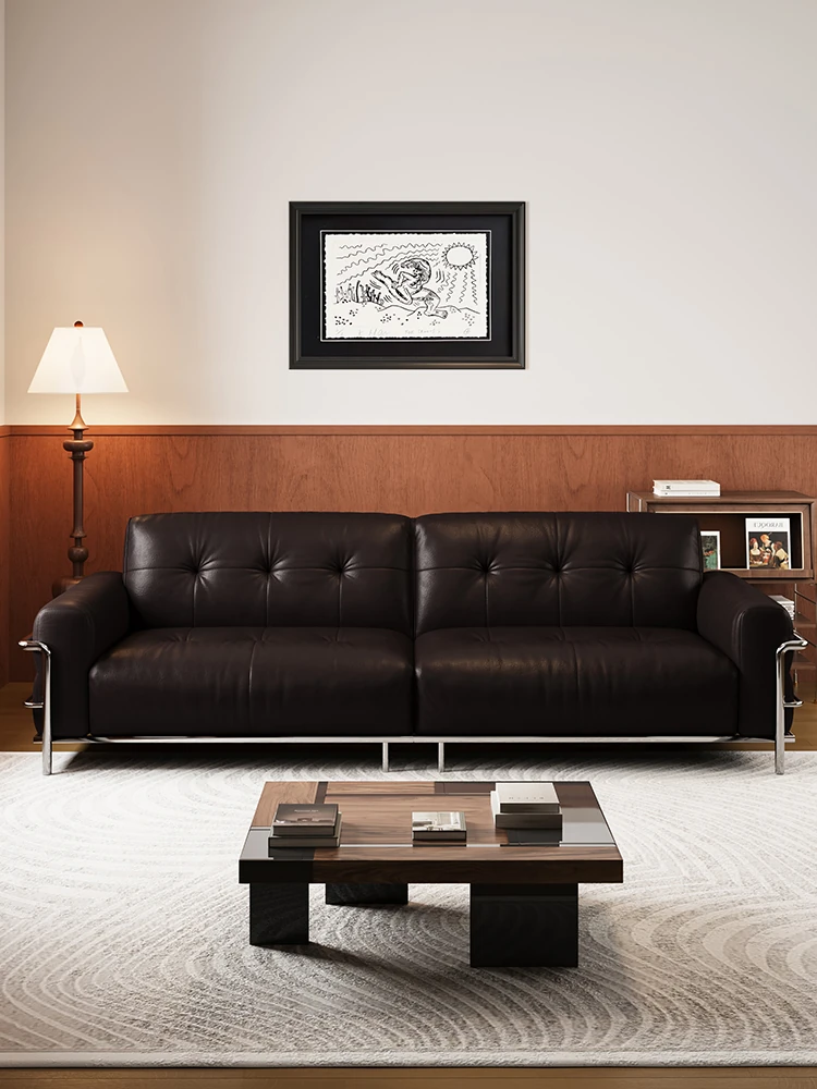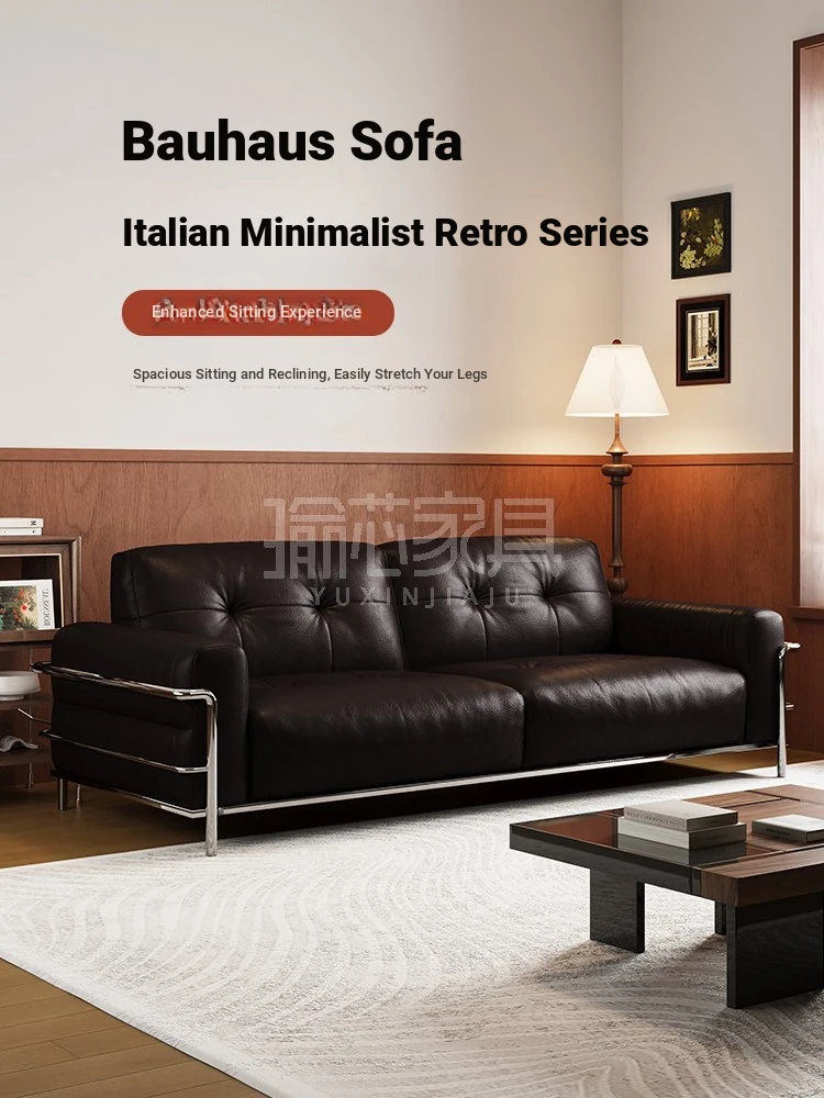 Italian Luxury Earl Genuine Leather High-Back Sofa for Small Apartments - Minimalist Bauhaus Design Faux Leather Couch - New Collection 2025