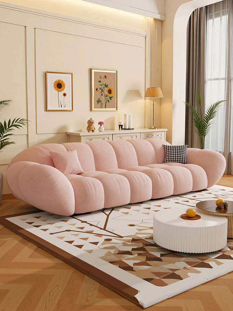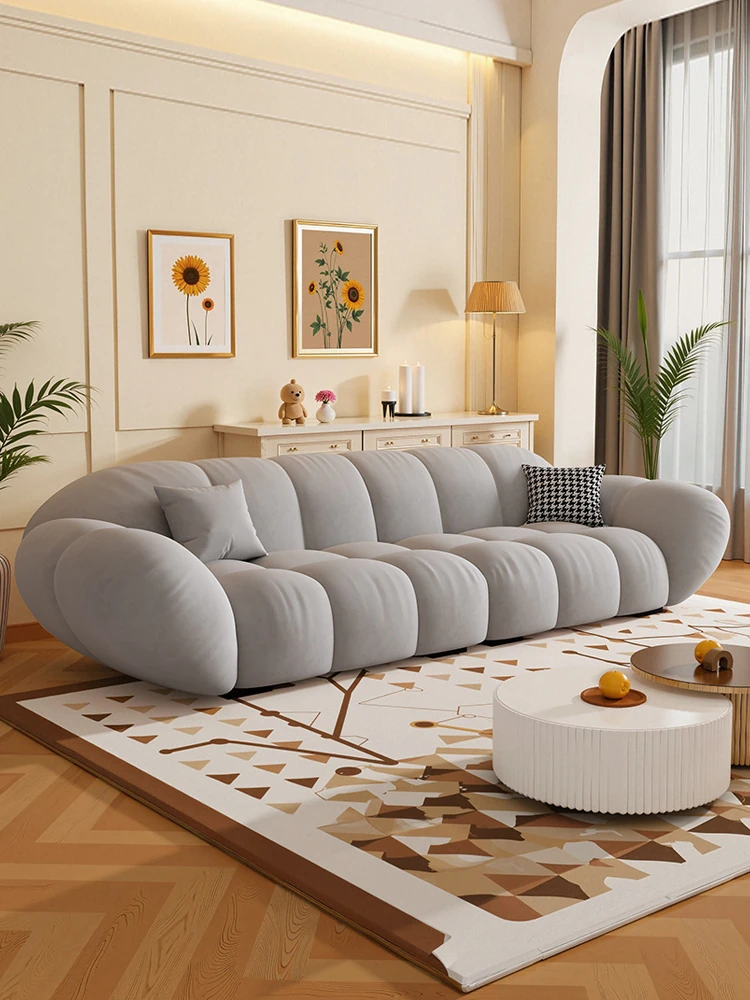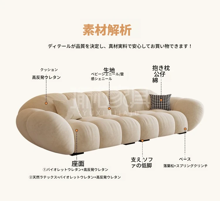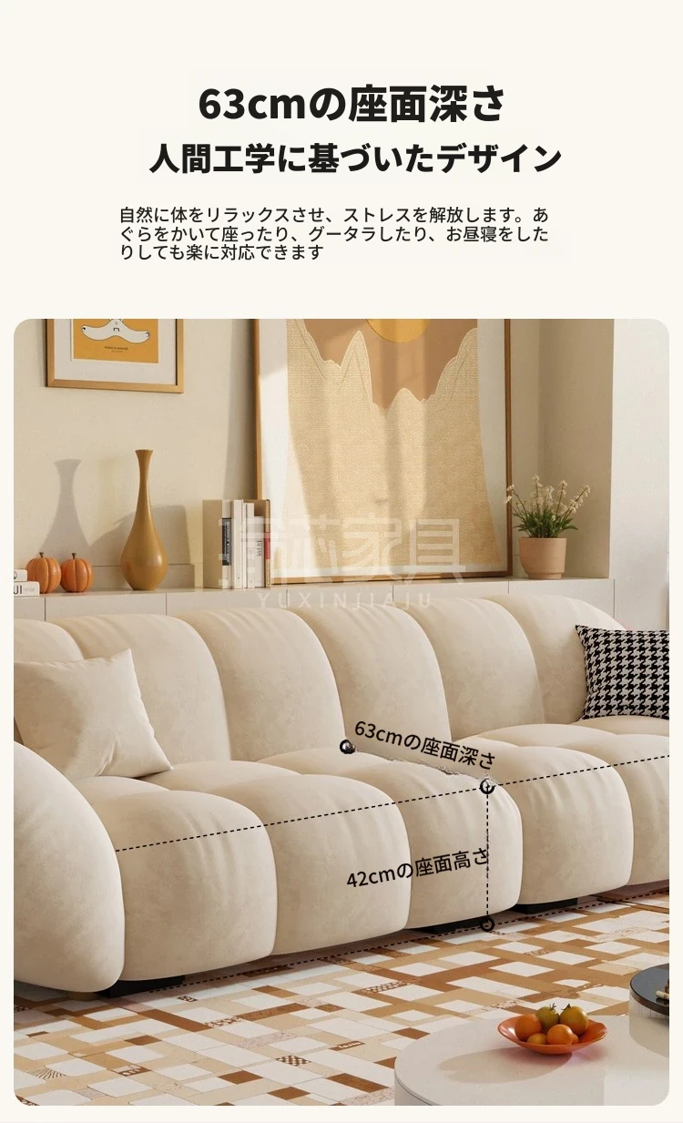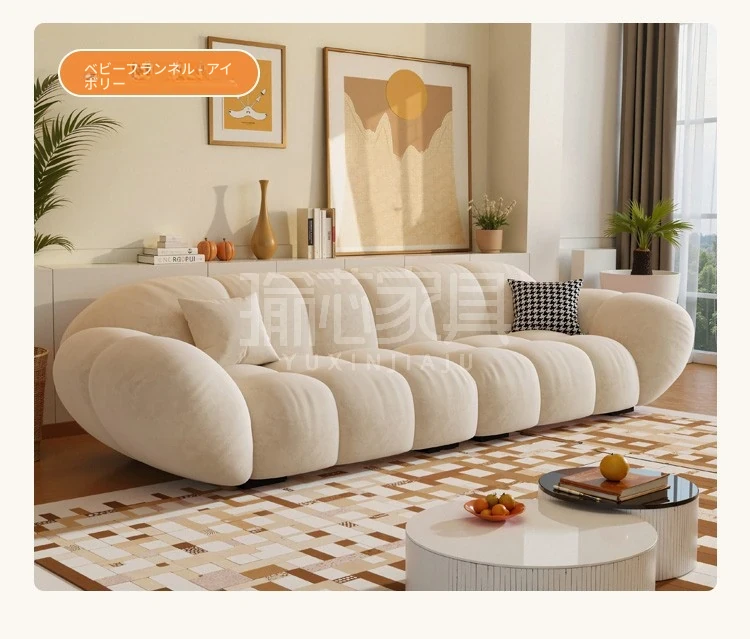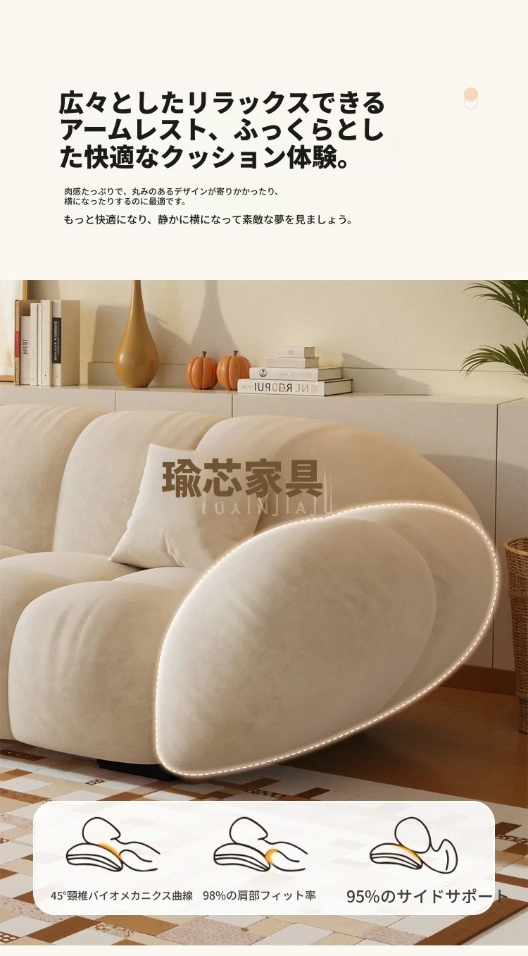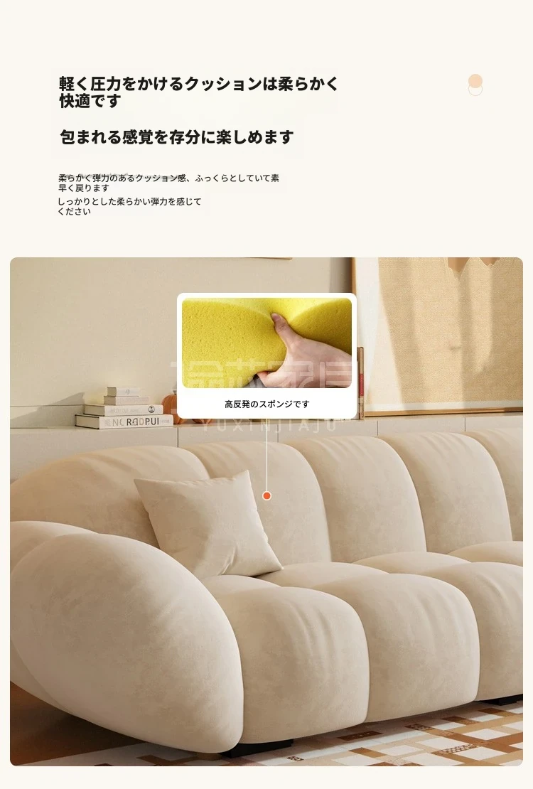 2025年新作 フレンチクリーム風 クラウドペタルソファ モダンミニマリストリビングルーム・アパート用 ポップコーン猫爪布製ソファ✨快適さとスタイルを兼ね備えた、あなたのリビングを彩る一品!