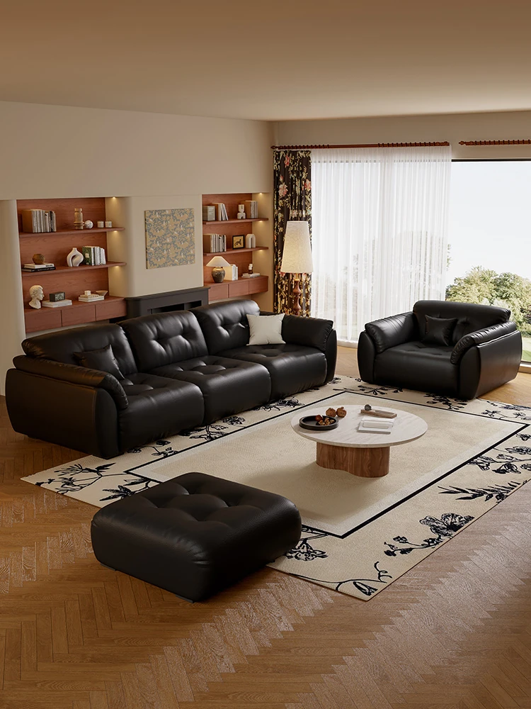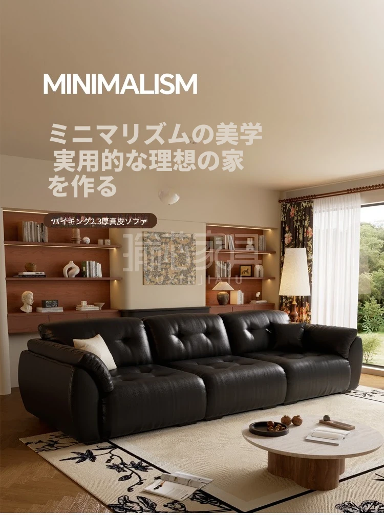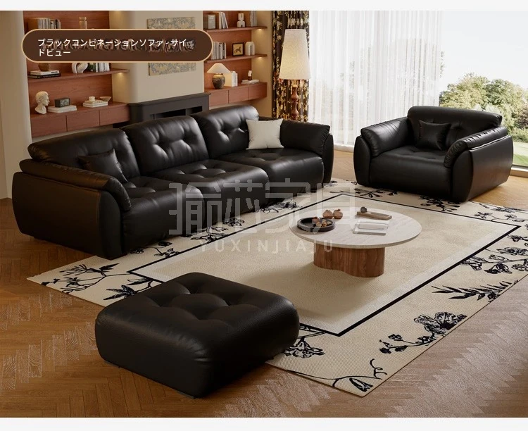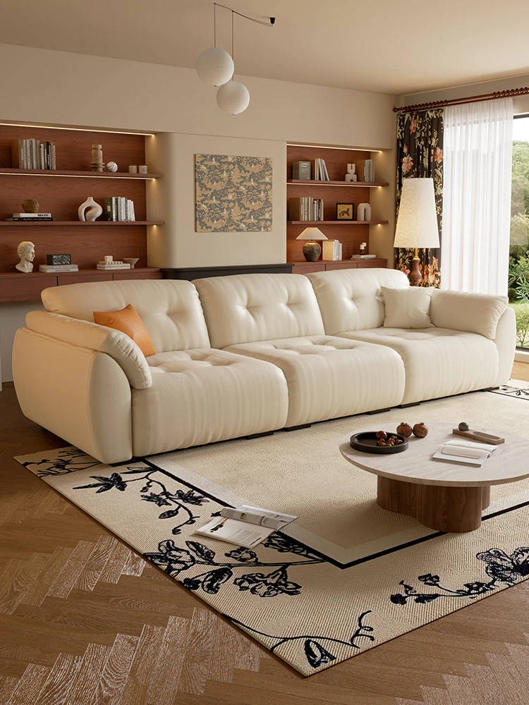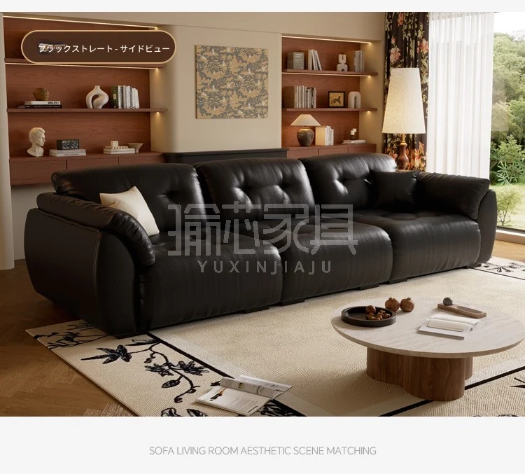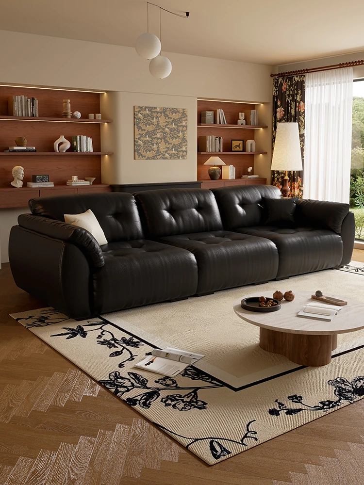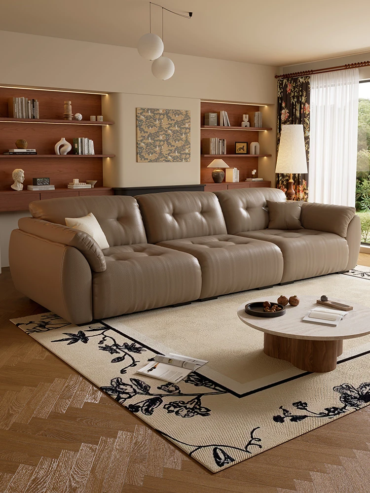 イタリアンラグジュアリー伯爵本革ストレートクラウドソファ2025年新作ヴィンテージシンプルリビングアパートメント用レザーソファ - 高級感溢れるデザインで、快適な居心地を提供します。