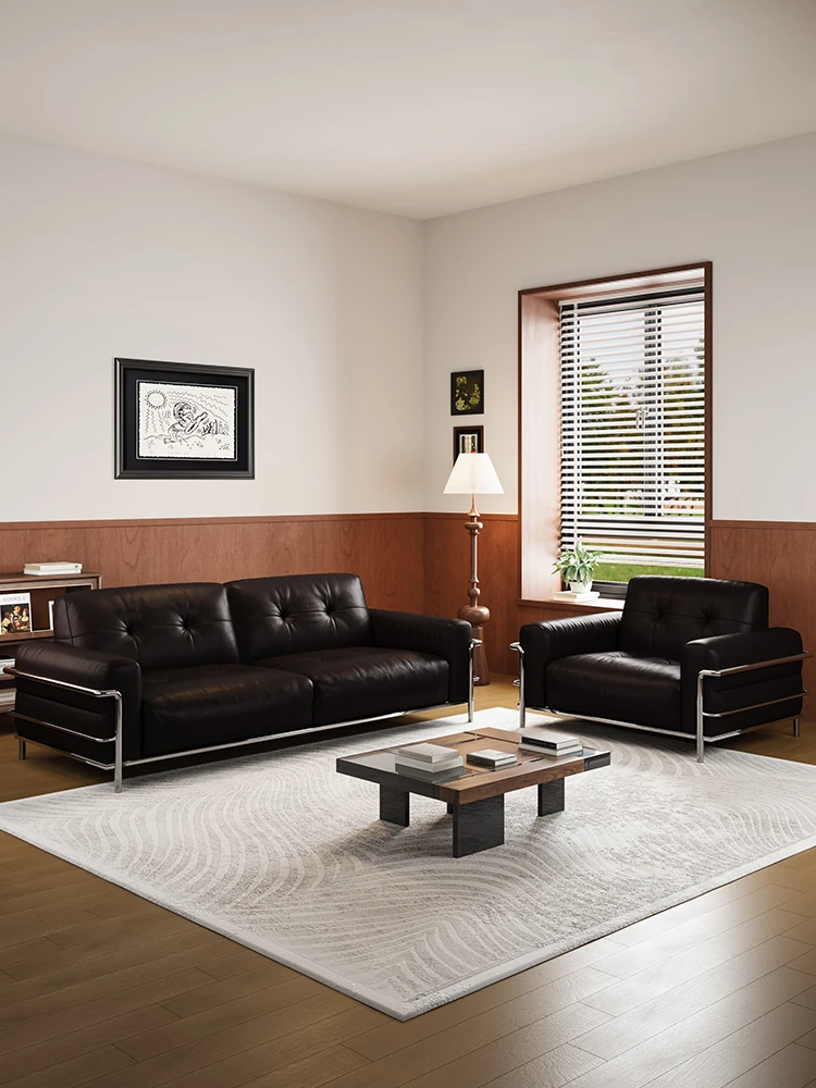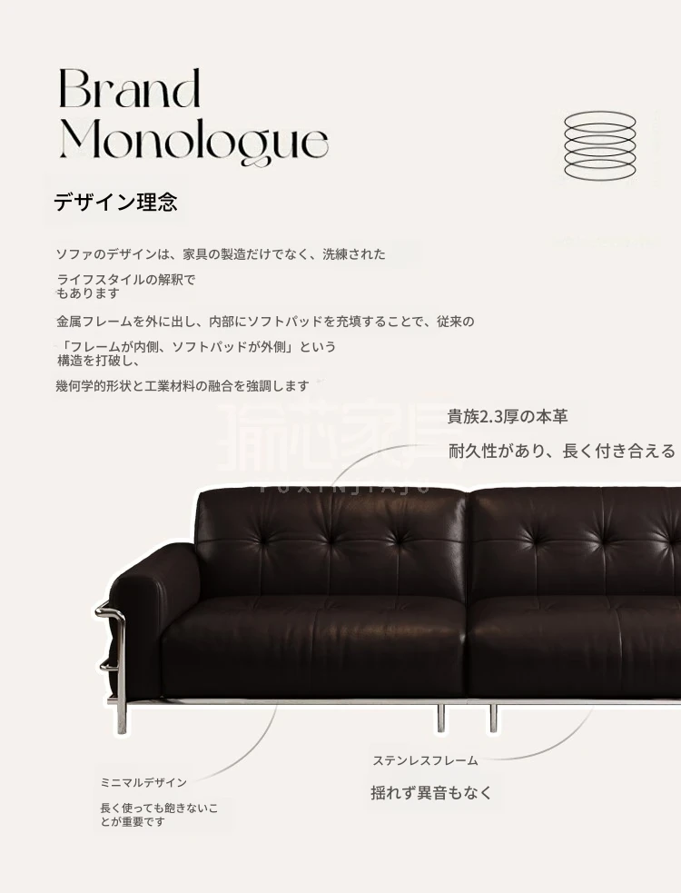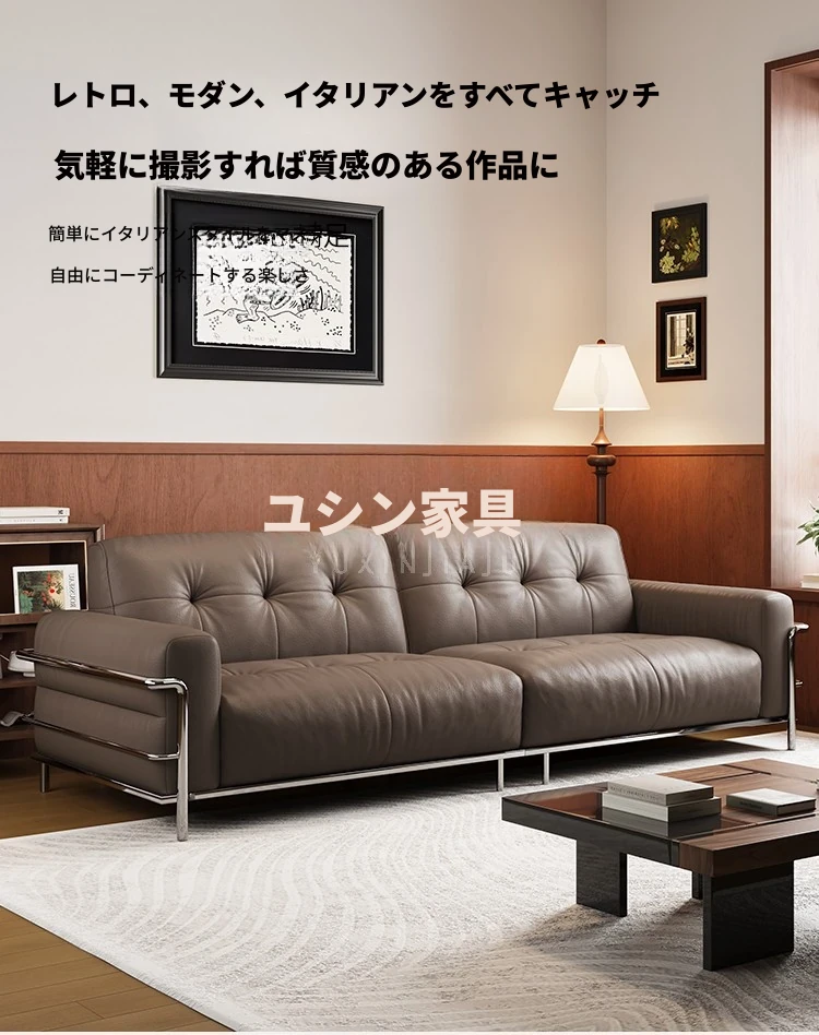 イタリアンラグジュアリーエルガー本革ハイバックソファ 小型アパートに最適 シンプルなバウハウスデザイン 2025年新作登場!おしゃれで機能的な空間を演出します。