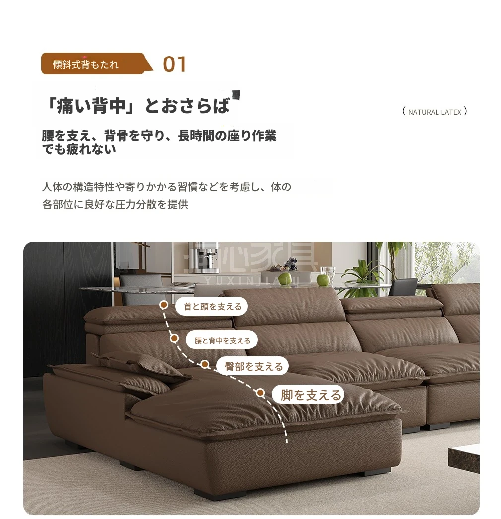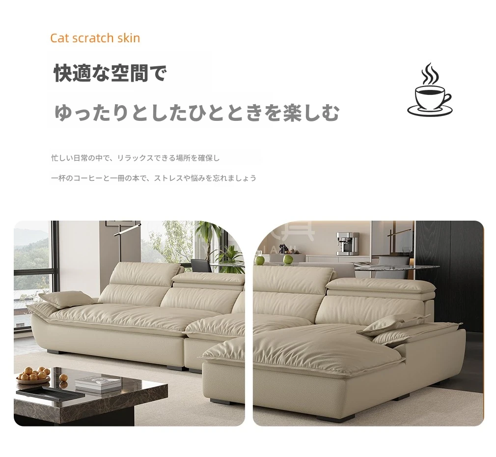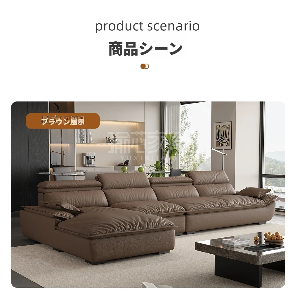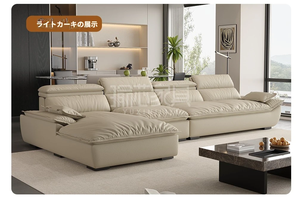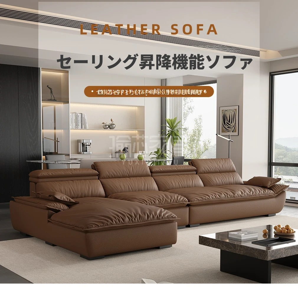 イタリアンライトラグジュアリー本革セーリングデザインの貴婦人ソファ、現代的なレトロスタイルの高背もたれ直立機能ソファ。贅沢な空間を演出し、リラックスしたひとときを提供します。