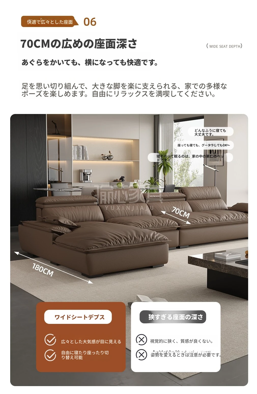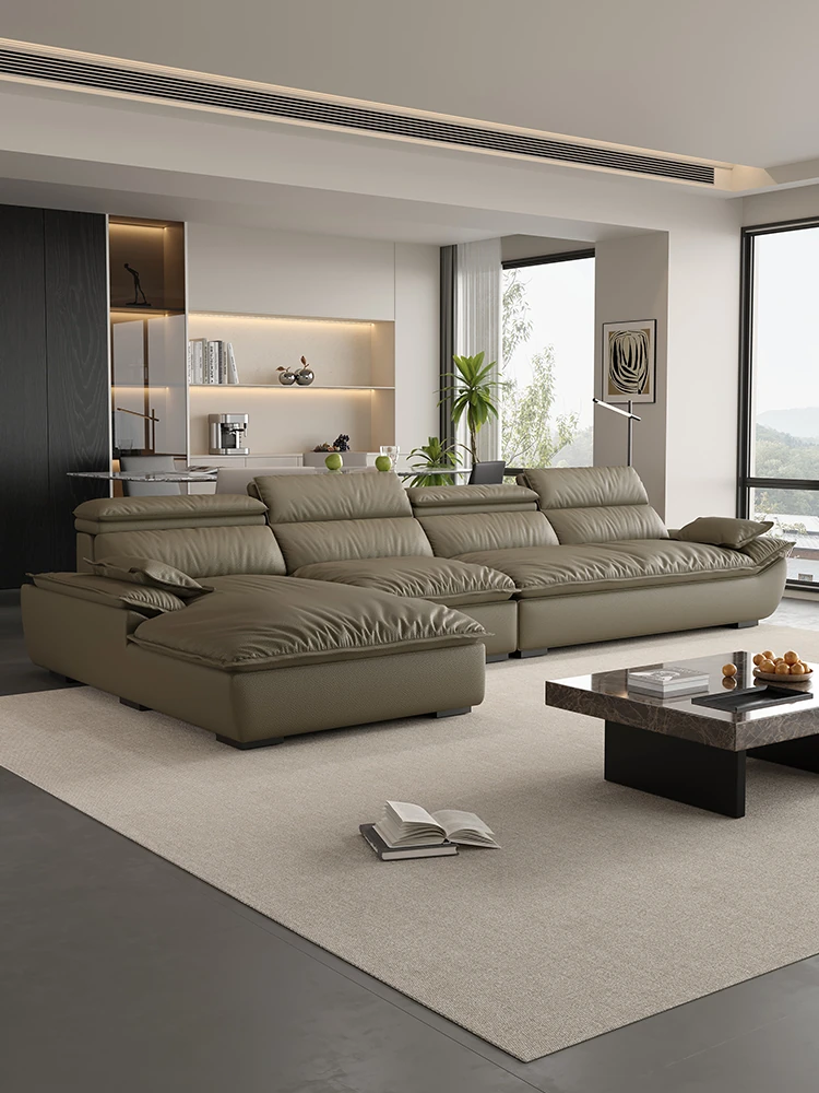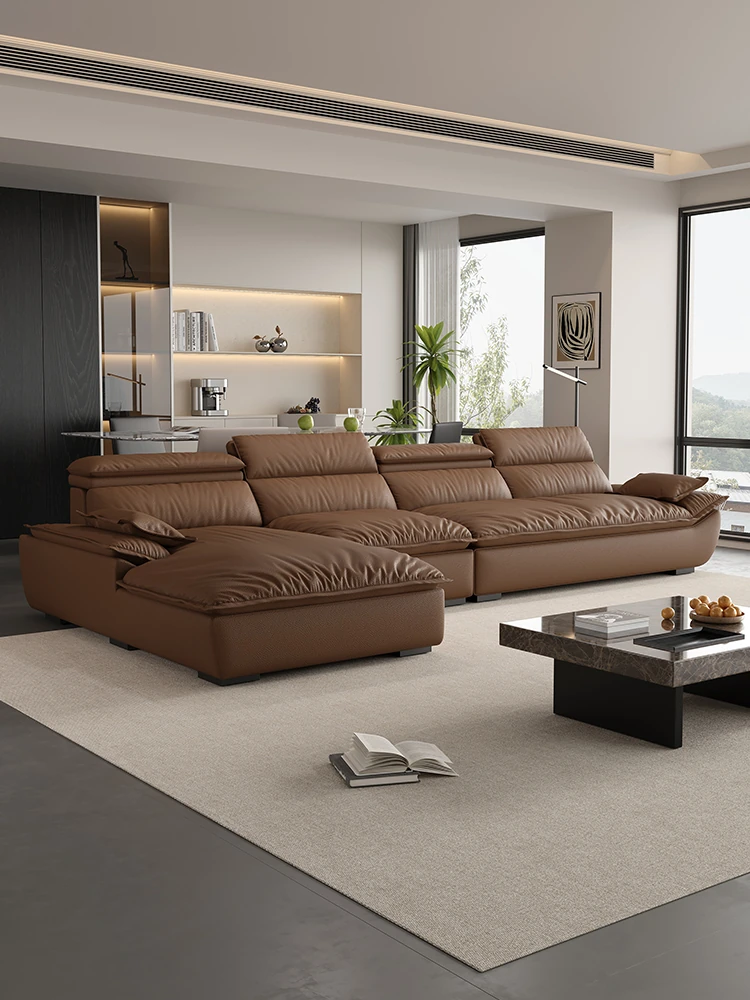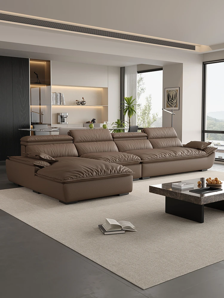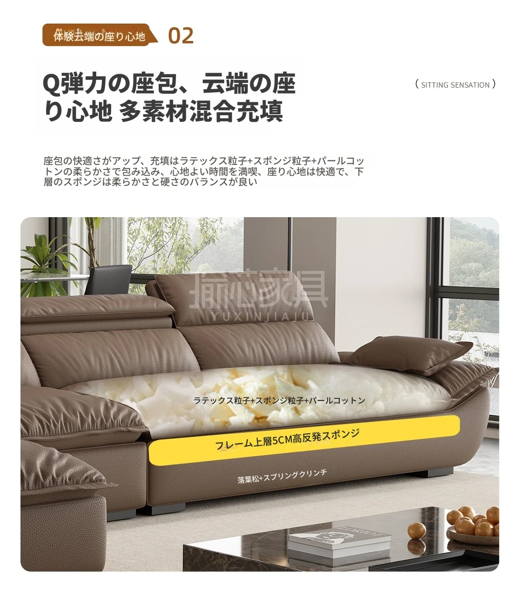 イタリアンライトラグジュアリー本革セーリングデザインの貴婦人ソファ、現代的なレトロスタイルの高背もたれ直立機能ソファ。贅沢な空間を演出し、リラックスしたひとときを提供します。