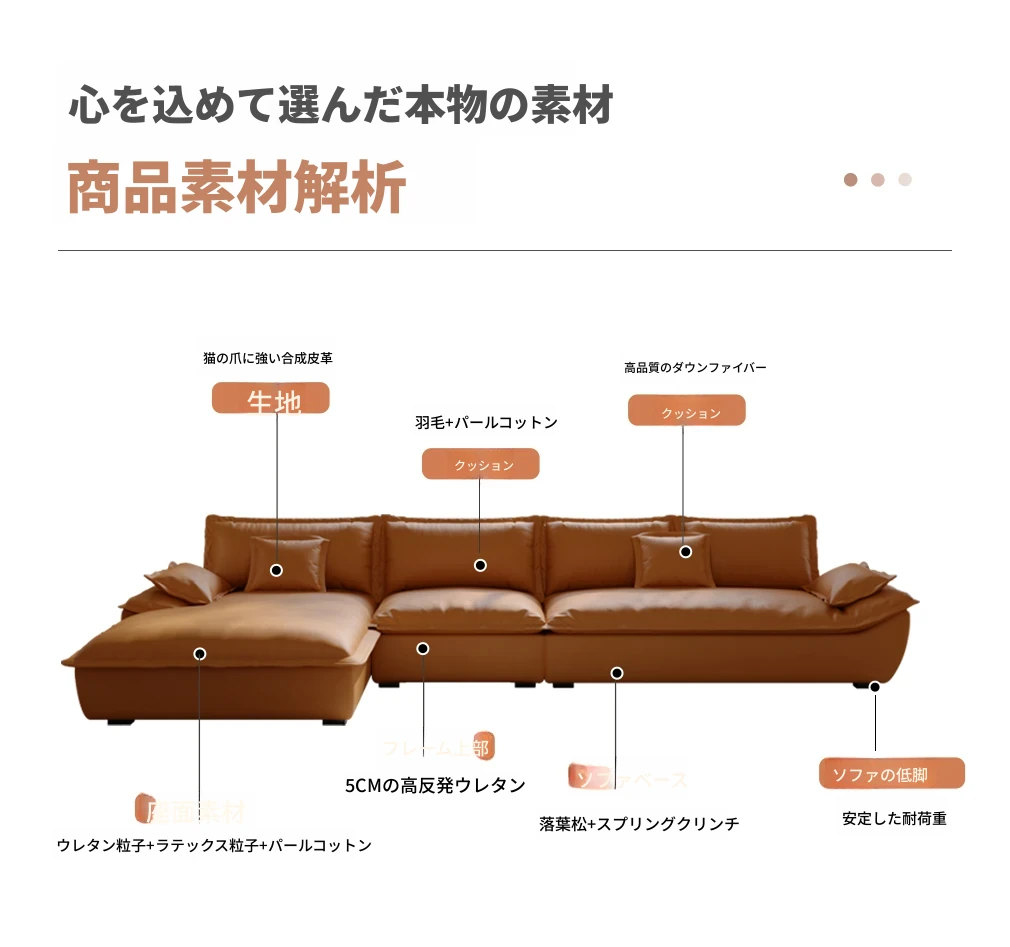 ダブルソファ+シングルソファ+左エンド3.6メートル | ゆったりした座り心地 | 輸入落葉松スプリングベース
