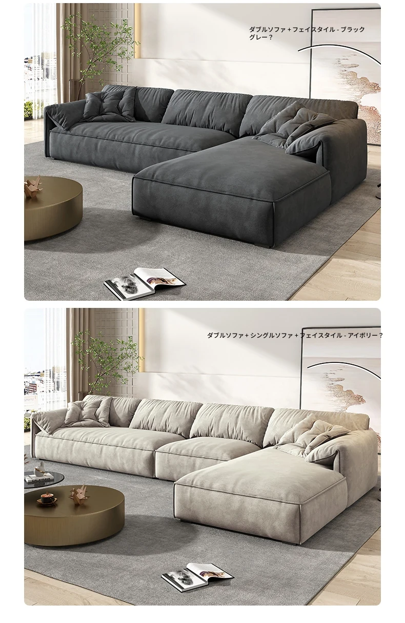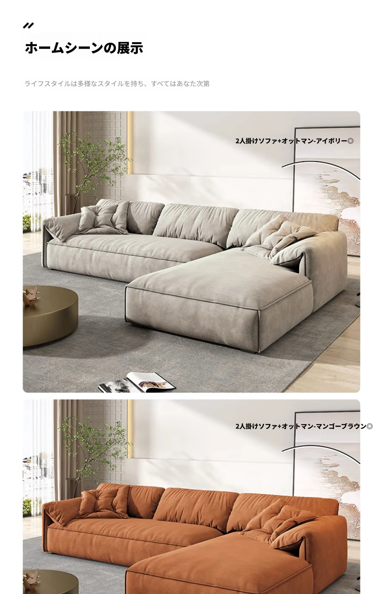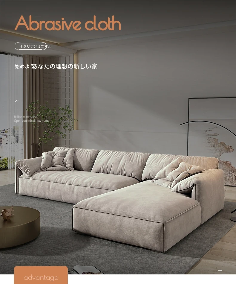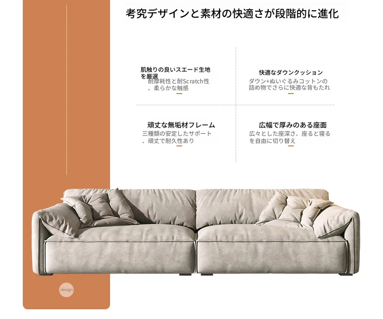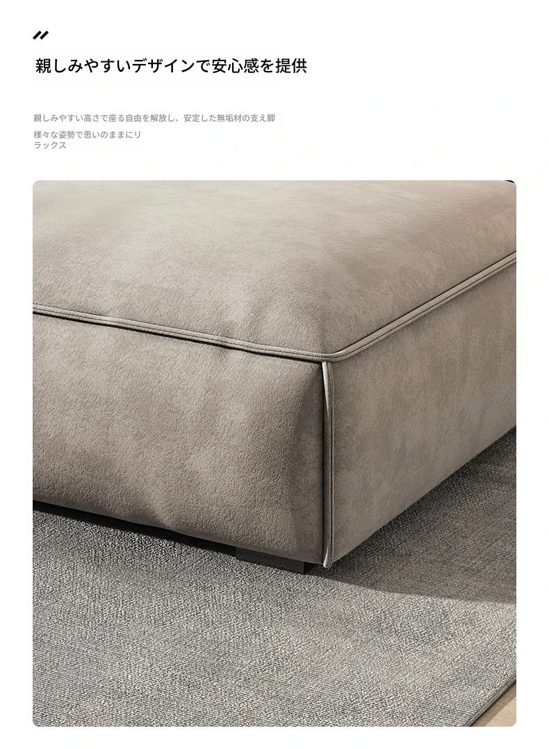 イタリアンミニマリズム!現代的なデザインのリビング用スムースラテックスソファ。お手入れ簡単なスエード素材で、コンパクトな空間にもぴったり。快適な象耳デザインで、居心地の良いひとときをお楽しみください。
