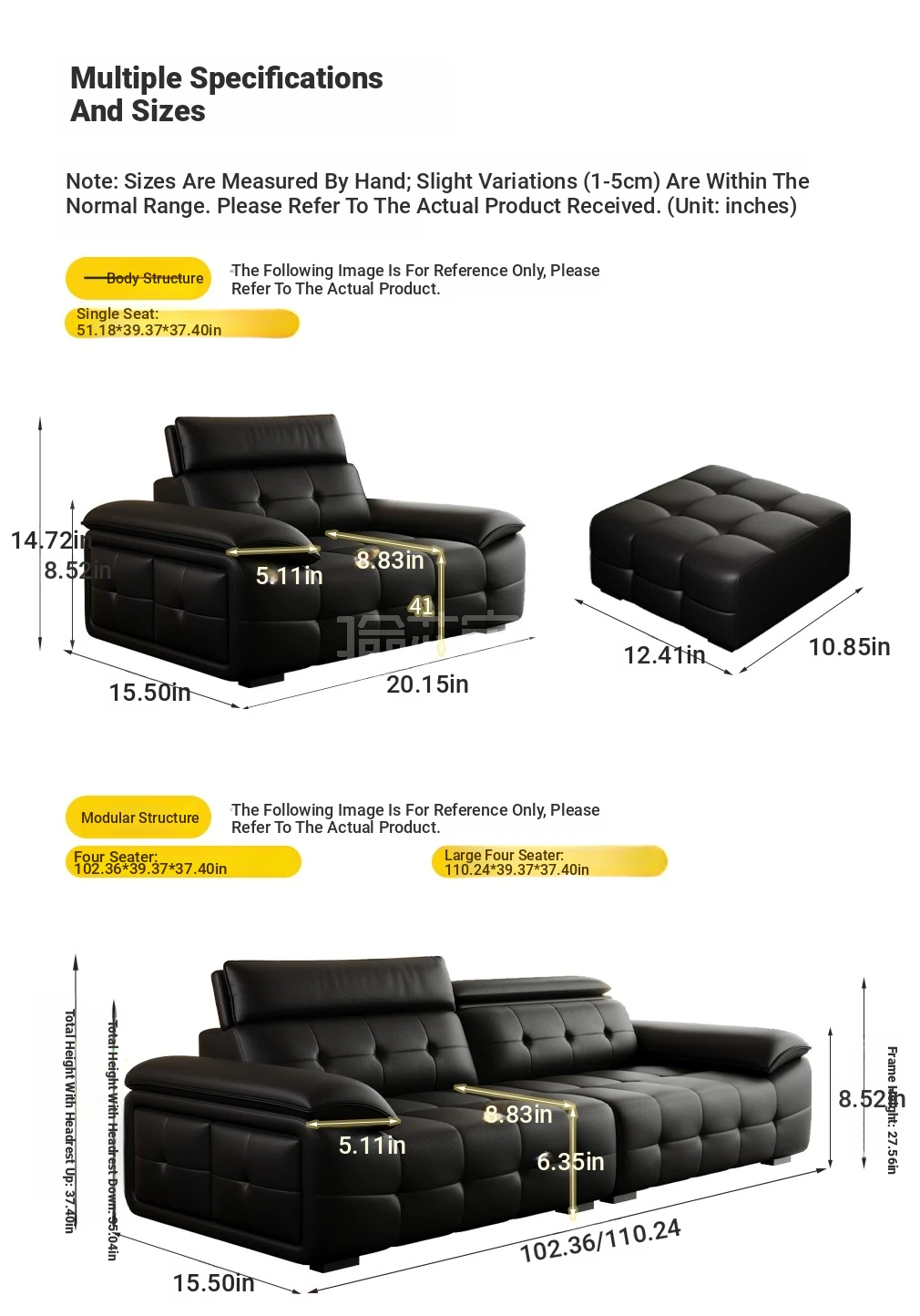 Italian Modern Luxury Laurence Sofa - Contemporary Minimalist Leather Sofa with Storage for Living Room, Suitable for All Sizes of Homes