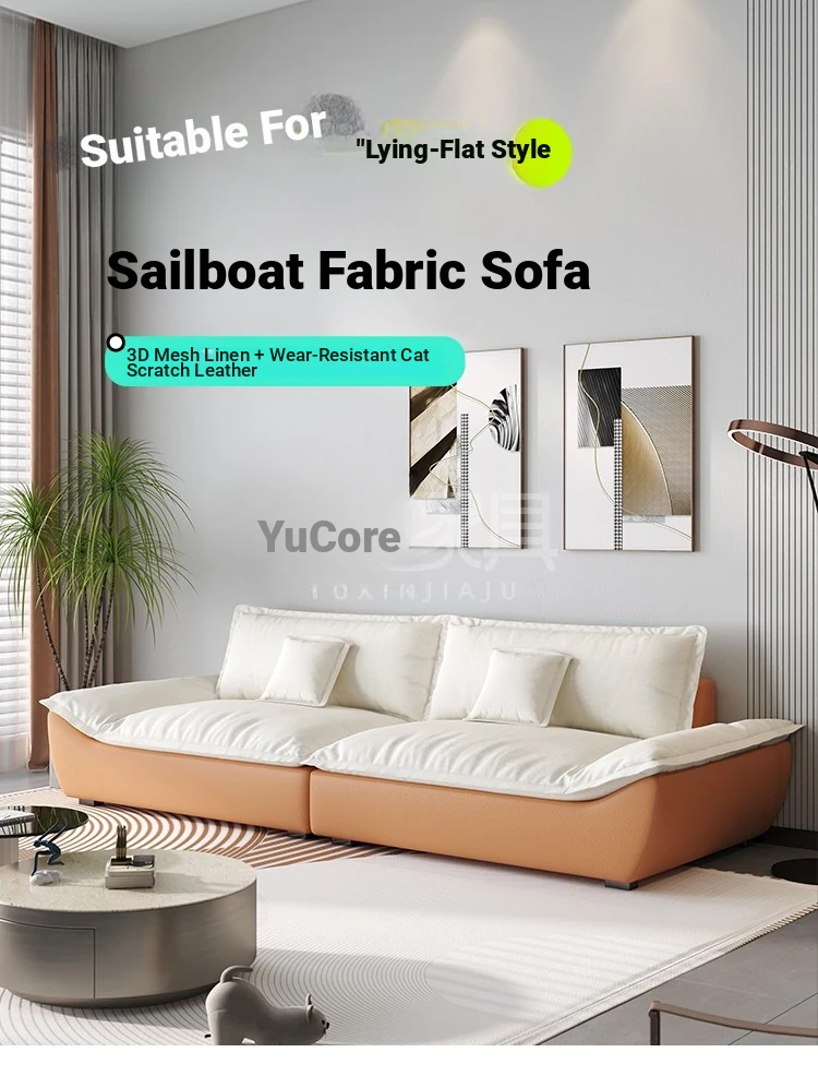 Modern Minimalist Sailboat Sofa - Compact Living Room Upholstery, 2025 New Cream Style Color-Block Sofa for Apartments